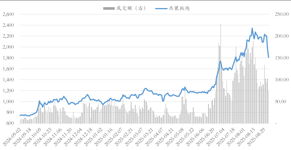 我们认为板块跌幅最大的阶段已经过去(三根阴线),之后可能还会经历一段缩量磨底的过程,今天中证国防指数的成交额已经开始萎缩,而这恰恰是布局四季度行情的绝佳时间窗口,类似于今年5-6月的时间窗口。