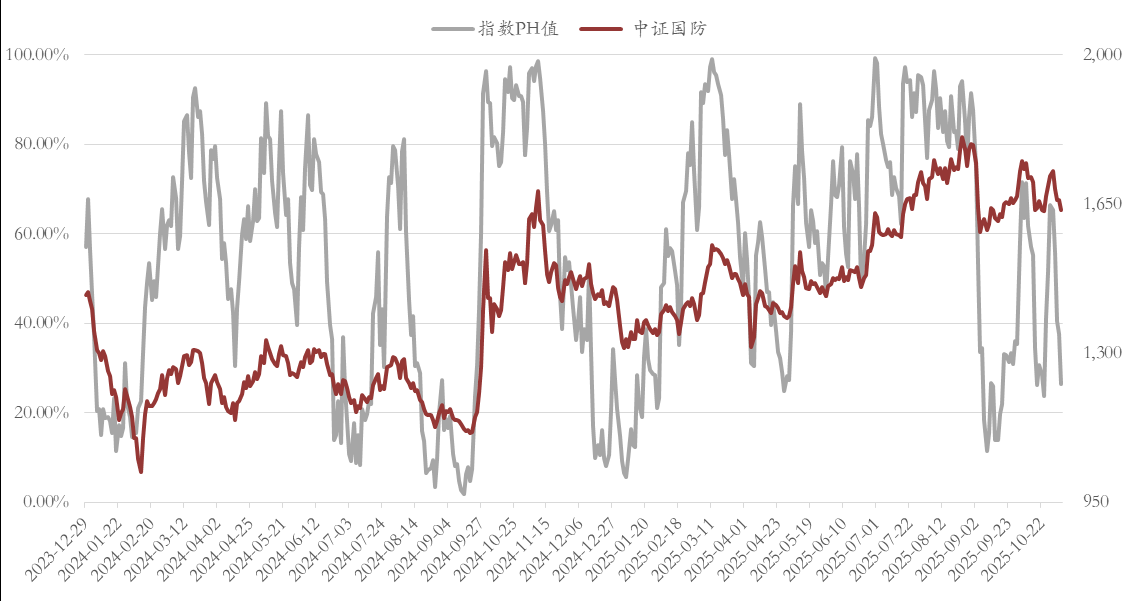 国防军工延续调整,感觉更多还是受到了市场情绪的影响,当然因为板块自身的基本面偏弱,所以很难指望短期能表现出“韧性”。中证国防指数成交额下滑至215亿,带动情绪指标——PH值进一步下滑至26%,逐步再次步入高性价比区域。