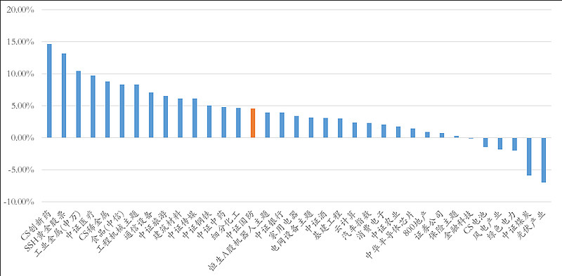 国防军工有所修复,但幅度上显著落后于大盘和科技成长板块,可以认为是前期“独立和韧性”的反噬。如若看3月24日大盘触底以来,国防军工的表现还算是中规中矩,至少在科技成长方向还是相对领先的。只能说今天的行情有点偏超跌修复,前期超跌的创新药、科技AI板块等相对领涨。