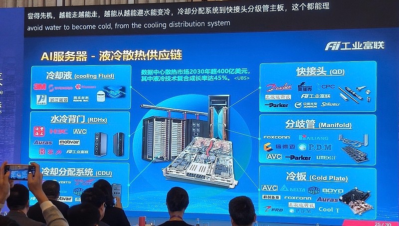 其实未来最有看点的还是AIDC,这块同飞直接做价值量最大的CDU,CDU应该占了AI液冷60%以上的价值量,下面会详细写CDU。前一阵富联在香港的交流里面有一张液冷供应商,同飞股份直接出现在CDU里面,并且其他对手也不见得有多强。
