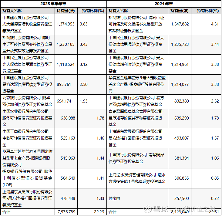 前十大持有人并没有太大的变化,只不过大佬钟宝申退出了前十大持有人,由于前十大持有人的门槛变化,所以不好判断大佬是彻底卖出了美锦转债还是仅仅是因为持有数量没有办法进入前十。