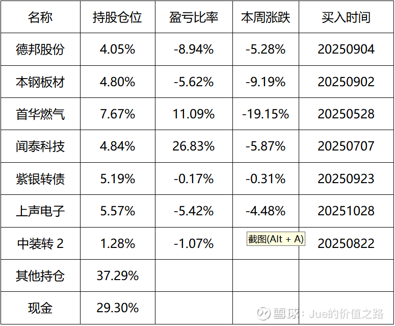 这周加仓了上声电子,买入逻辑主要是化债+未来新建产能释放+二期发债配置套利,其实在之前的文章中已经写过,上声电子的预期收益实现时间可能会相对比较长,估计要等到明年年报和一季报发布,上声电子目前浮亏5%,暂时可接受,如果后面股价跌破25元可能会考虑再加仓。对于上声电子,个人觉得要有一定耐心并将预期放低,急于在短期内实现收益可能事与愿违。对于二期发债是否对股价有影响,个人觉得公司没有必要刻意压制股价,如果股价上涨可以将二期转股价设置在较高的位置,避免股权过分稀释,对公司来说并非坏事。下周一公司可转债项目将进行评审,希望一切顺利。