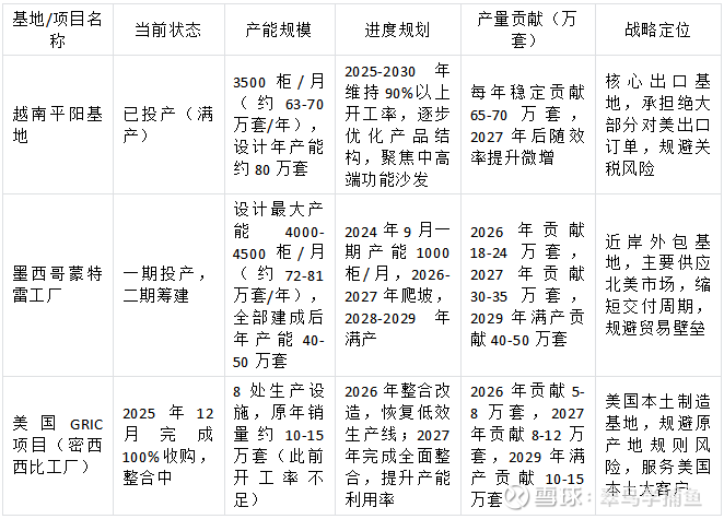 • 项目投产与爬坡不及预期(中危):武汉、西安、长春等国内新建基地,以及墨西哥二期扩建、美国GRIC项目整合,可能因建设进度、资金投入、管理磨合等问题,导致投产时间延后或产能爬坡速度慢于计划;墨西哥工厂历史爬坡进度曾低于预期(原目标2023年底月产能2000柜,实际2024年9月仅1000柜)。