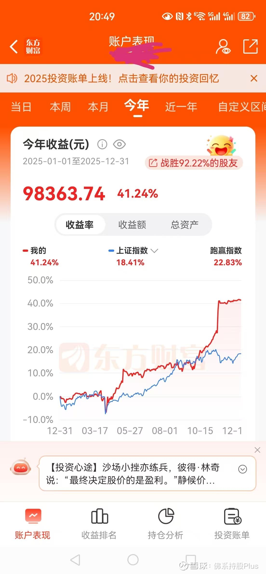 2025年已经过去,行情比想象中好,操作虽有不如意,但也收获多多 。一句话总结:感恩这个伟大的时代!