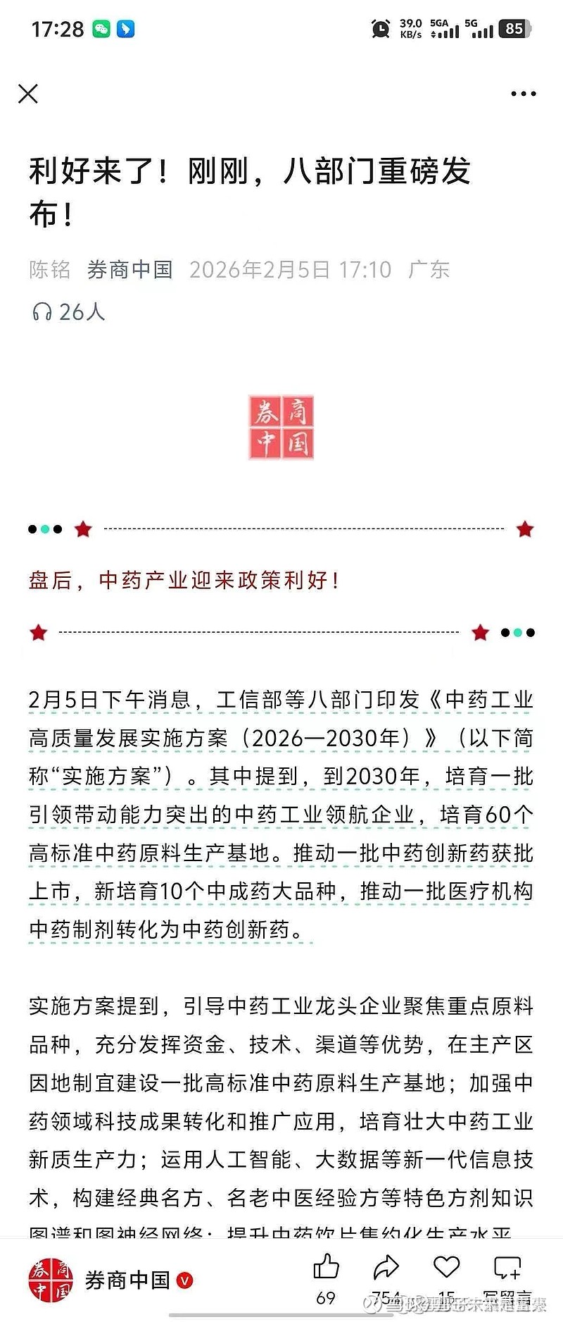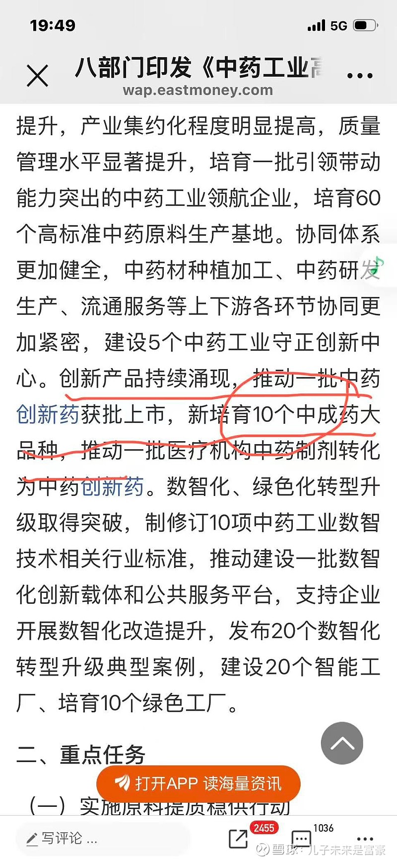 $ST百灵(SZ002424)$ 今天国家八部门重磅发布中药工业高质量发展实施方案其中跟贵州百灵相关的表述有到2030年培育一批引领带动突出的重要工业领航企业,大力发掘民族药资源,围绕少数民族药物独特疗效的经验和传承,加快民族药产业现代化转型。跟糖灵通络相关的表述有创意要推动一批中药创新药获批上市培育10个中成药大品种,推动一批医疗机构中药制剂转化为中药创新药,这都是为贵州百灵唐灵通路量身定制的方案。