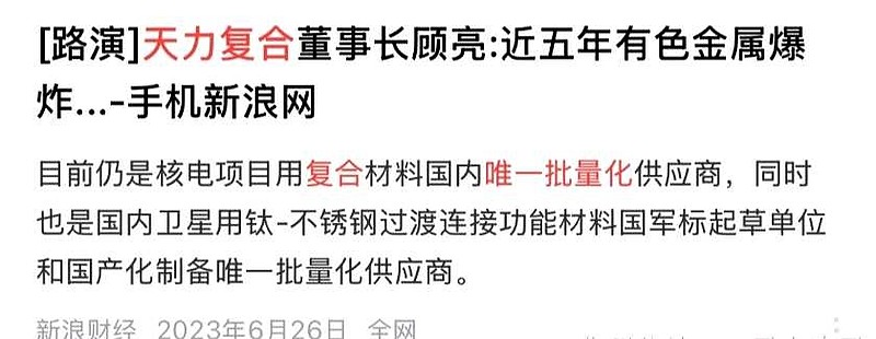 $天力复合(BJ920576)$ 天力复合——西部材料子公司,spacex供应商,公司是卫星用推进系统复合接头材料(钛-不锈钢复合接头)国内研发最早、国军标起草企业、唯一批量化供应商。同类型锆-不锈钢复合接头更是中核集团定点供应商。