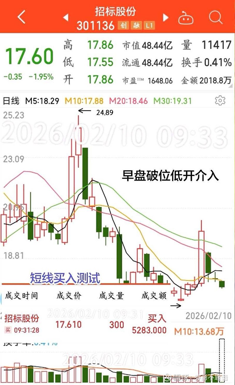 :破位低开,短线买入测试,买入即套…