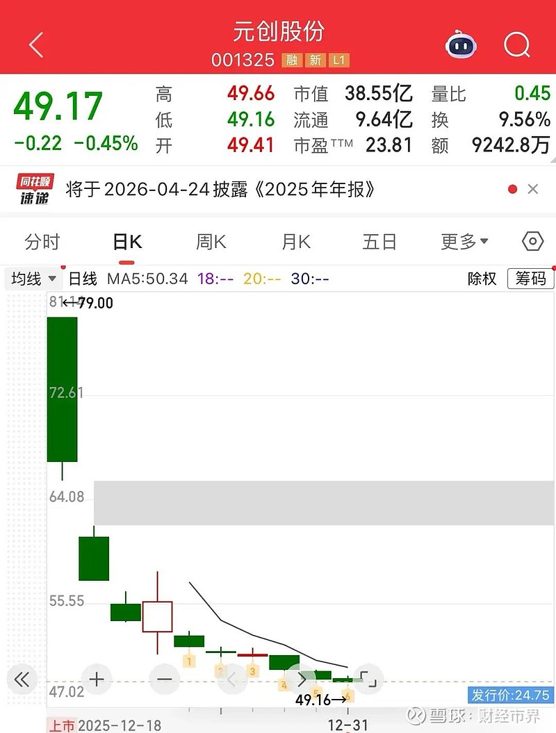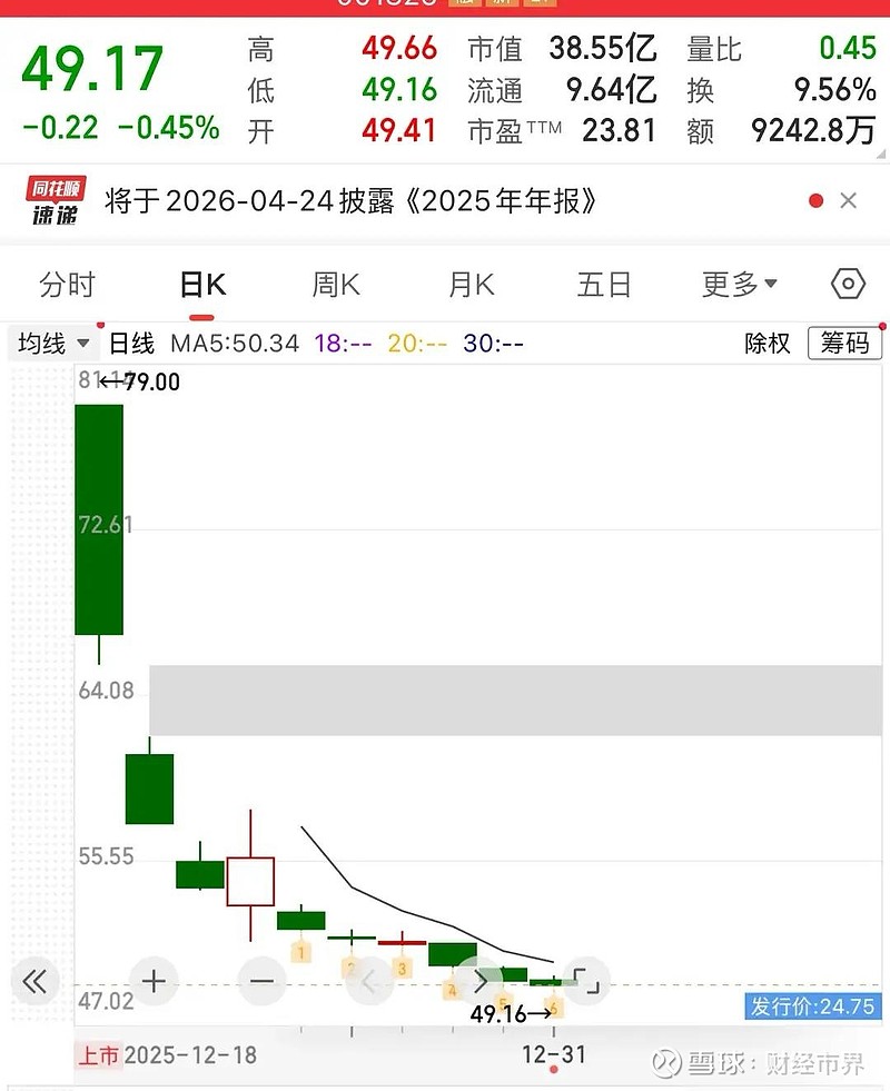 看看这只股票,上市10天直接跌了8天,从最高79元跌到了最低49元,而且基本每天都是跳空低开,不管是抄底,还是补仓的,全部被套,真的是只要你敢买,他就敢买,最后都敢直接把公司卖给你!
