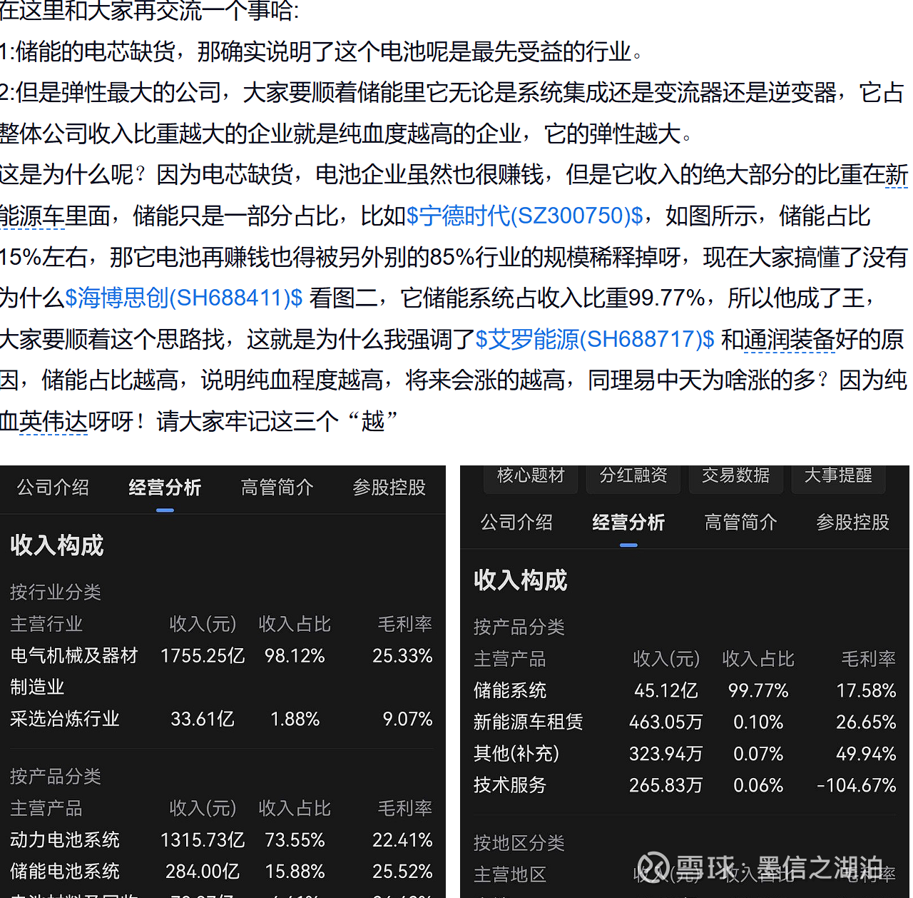 这两天发现了个新的必要选项,大家发现没有$艾罗能源(SH688717)$ $通润装备(SZ002150)$$派能科技(SH688063)$ 继海博思创之后,这三家走势比其他的储能公司暂时要强很多,他们除了纯血程度高还有个共同的属性,请看: