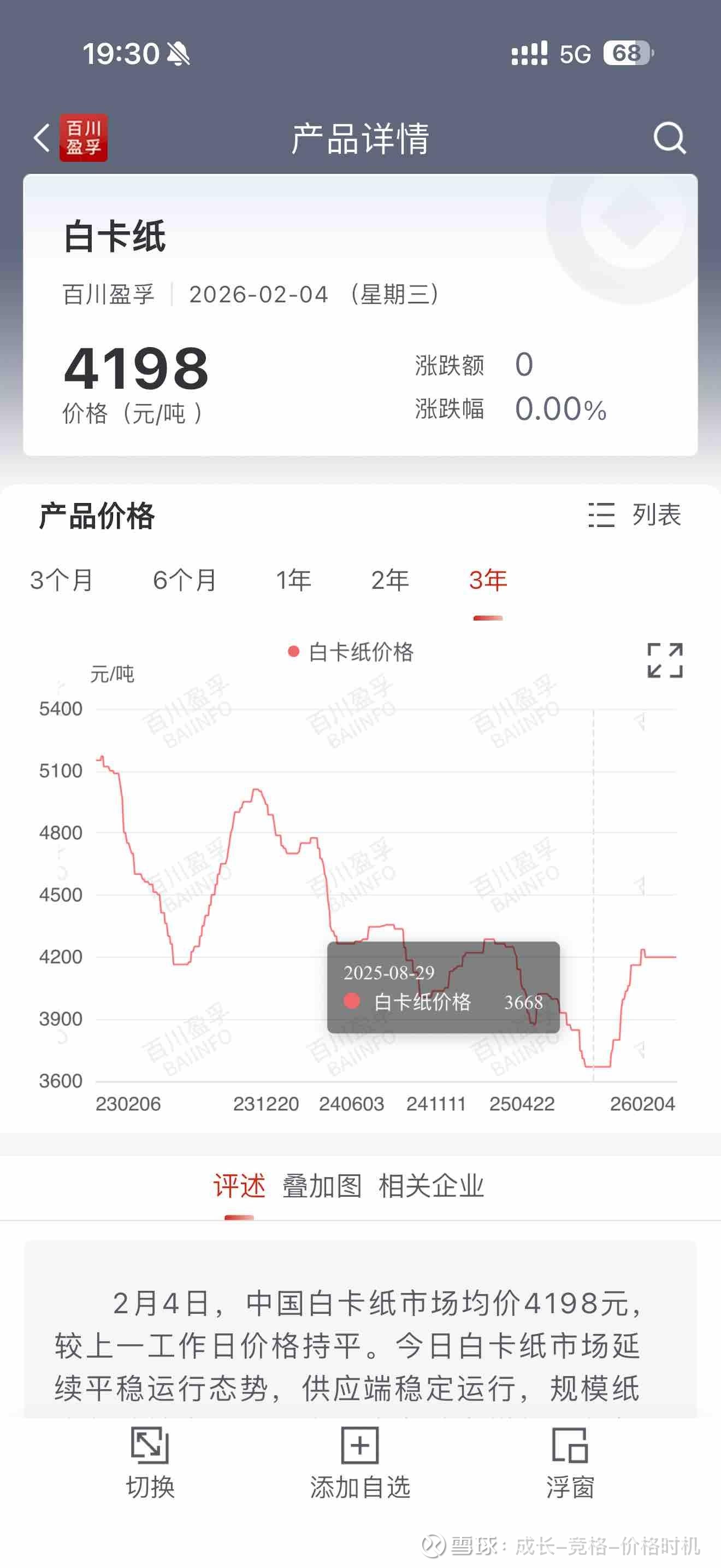 $博汇纸业(SH600966)$ $太阳纸业(SZ002078)$白卡纸最受益是博汇纸业,叠加人民币升值。但目前价格比2024Q1低500,和2025Q1持平,预计2026Q1利润低于2024Q1(已考虑人民币升值)
