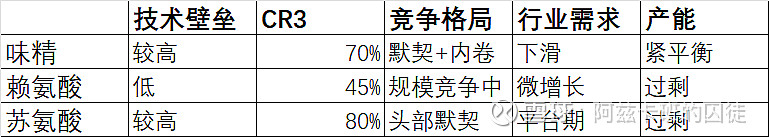 $阜丰集团(00546)$ $梅花生物(SH600873)$ 之前对两家有误解,以为是无理智内卷,实际上两家好像有默契,即斗也合,苏氨酸有默契,味精是有斗有合。赖氨酸大局未定,加上老二是星湖,目前还在白热化竞争。阜丰有意识甘居赖氨酸老五。