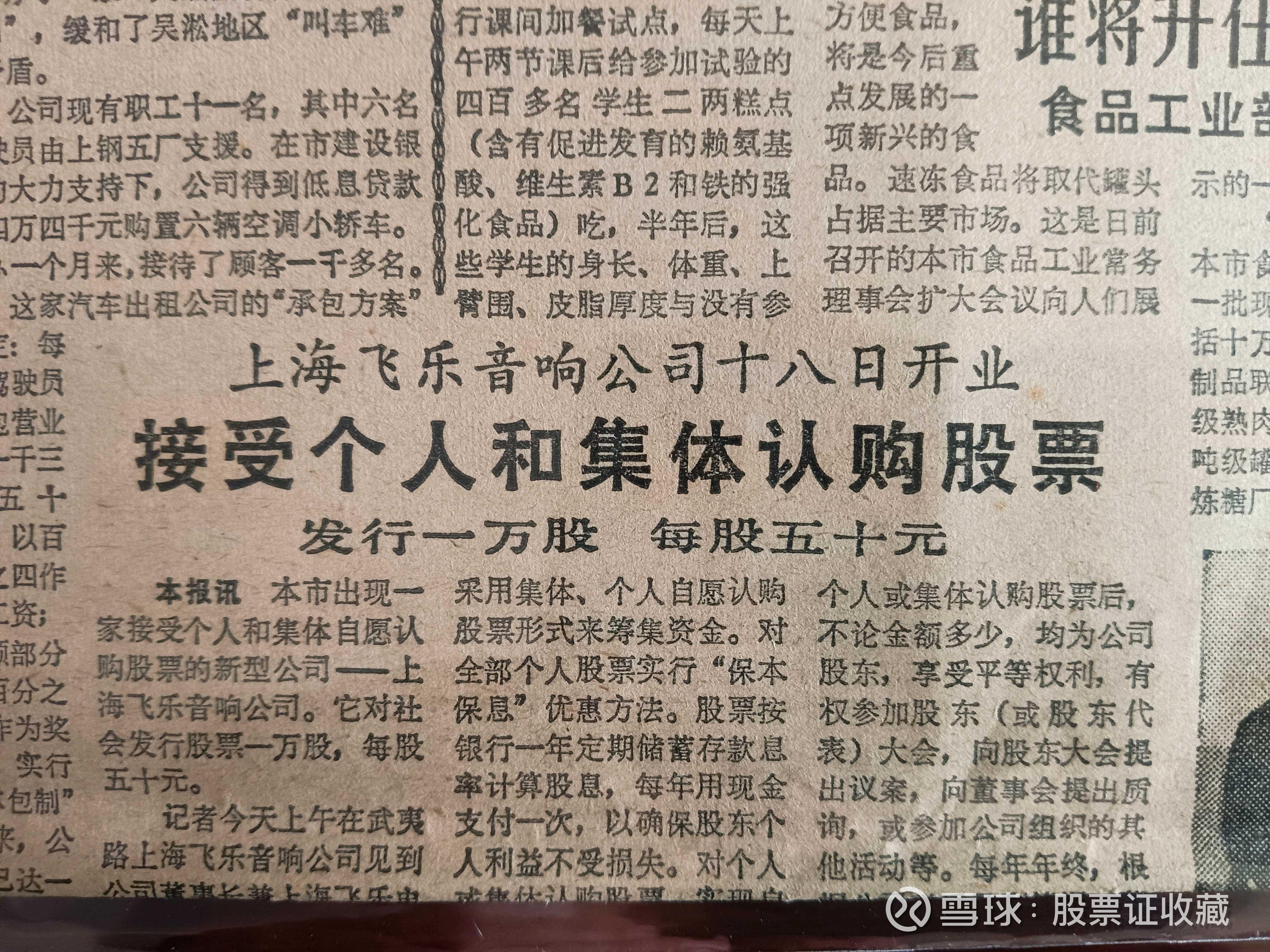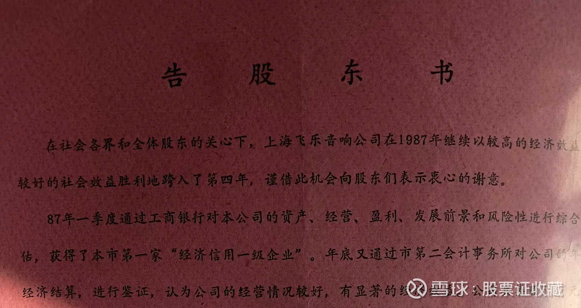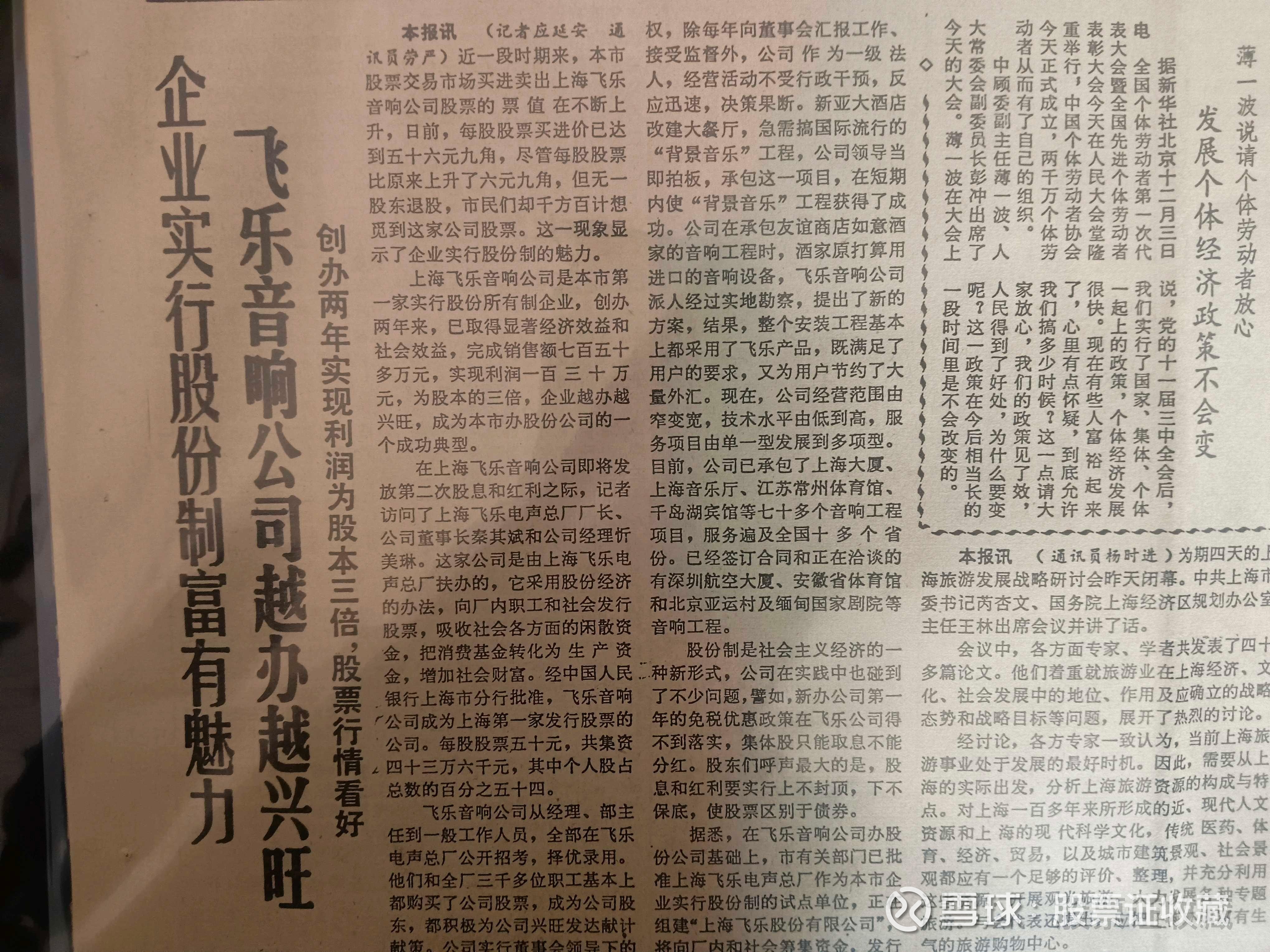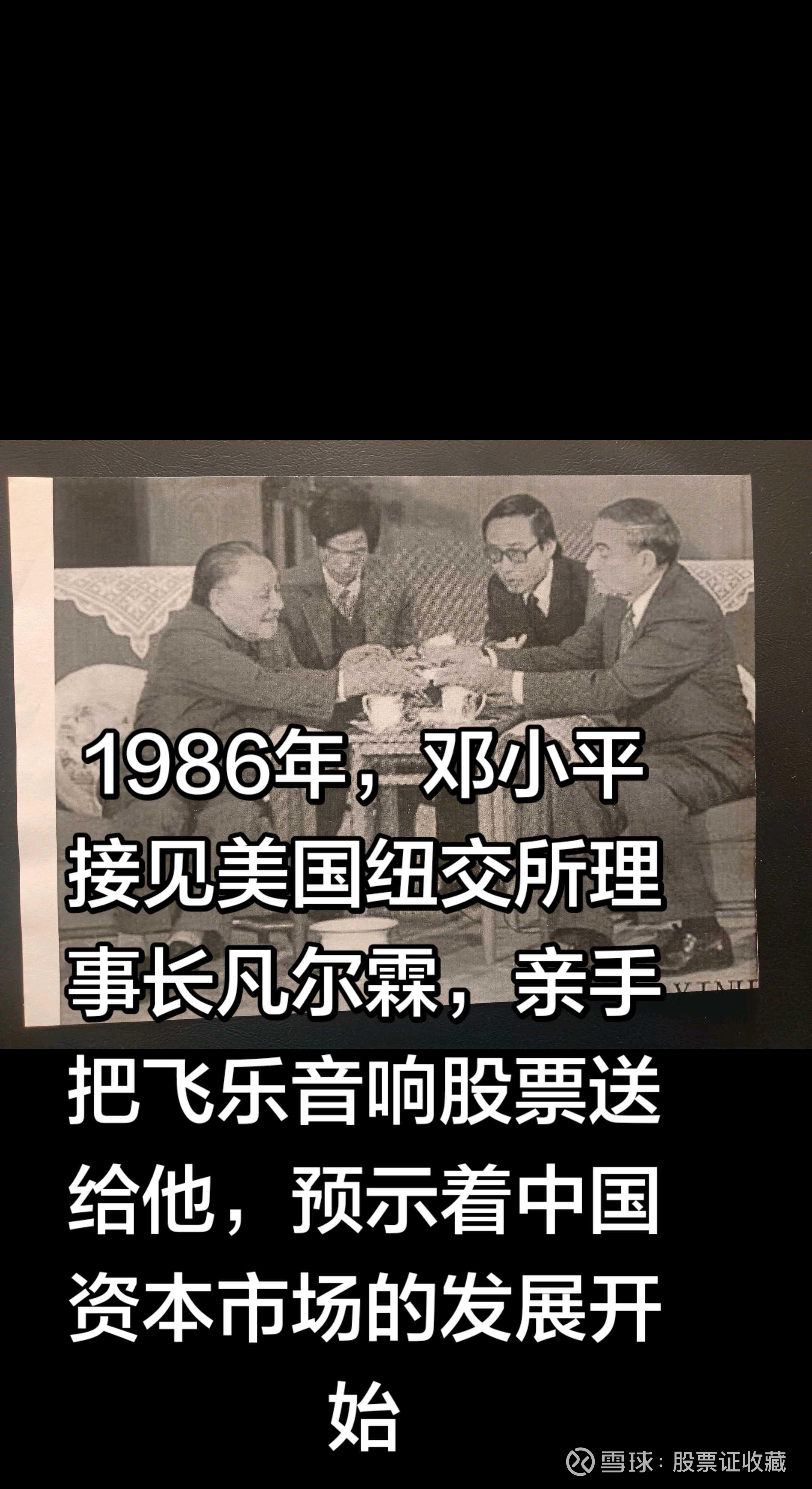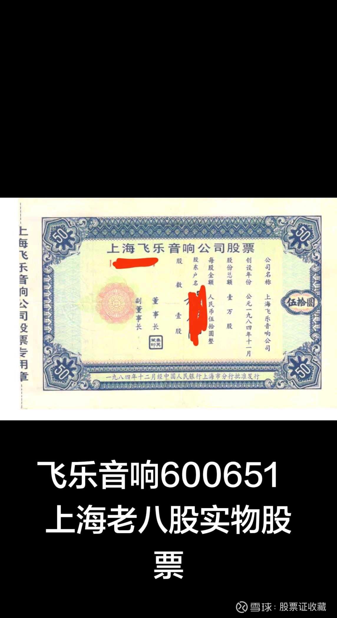 上海老八股之一,1984年11月发行,1990年12月19日上海证券交易所开业当天上市交易,1986年,邓小平接见美国纽约证券交易所董事长凡尔霖,亲自送他一张飞乐音响股票,此举也预示着中国资本市场的发端。 飞乐音响故事太多,是中国早期资本市场最有代表性的公司,在国家党史馆陈列标注为一级文物。实物股票有两种,1984年版和1989年配股版,因是上海老八股是最早发行,据说设计思路还是源自建国前后的南洋兄弟烟草公司的股票图案,飞乐音响股票存量稀少,价高。