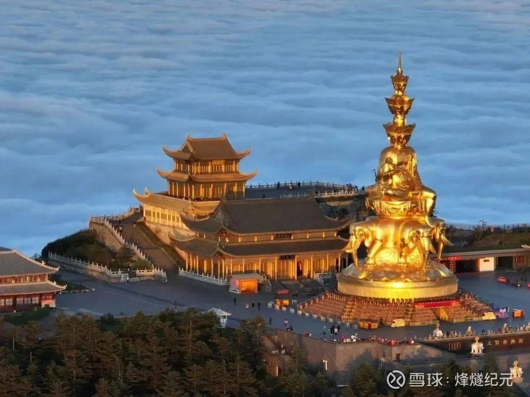 金顶:海拔3079米,可观赏云海、日出、佛光、圣灯四大奇观,十方普贤圣像为全球最高金佛(48米)。