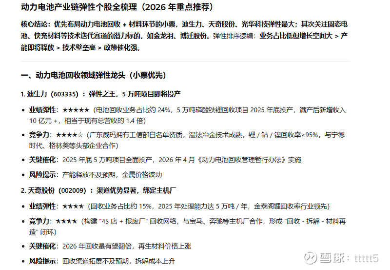 动力电池回收领域弹性标的。$迪生力(SH603335)$ $天奇股份(SZ002009)$ $超越科技(SZ301049)$