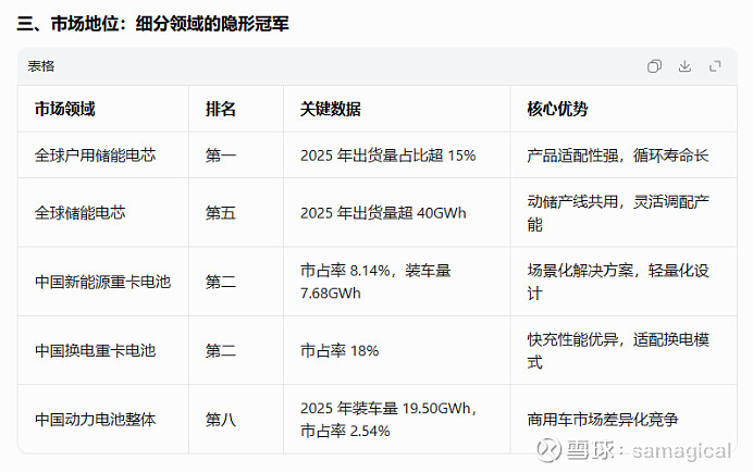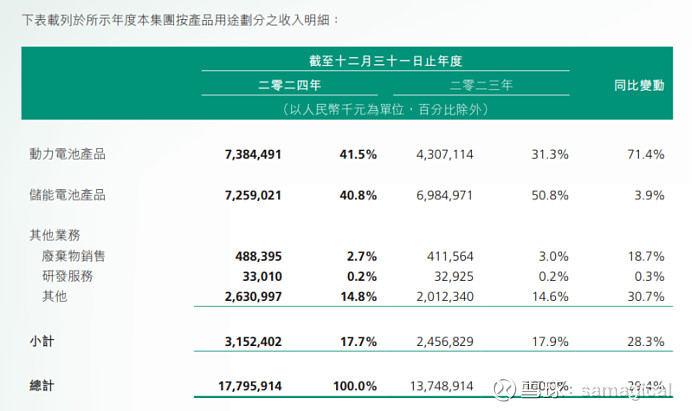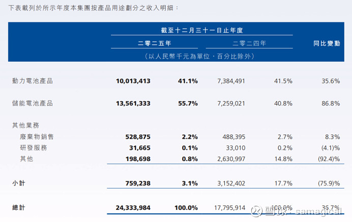 主要是储能的电芯,公司 2025 年上半年储能电芯出货量稳居全球前九,小储(含户用储能、通讯储能)电芯出货量稳居全球前三。