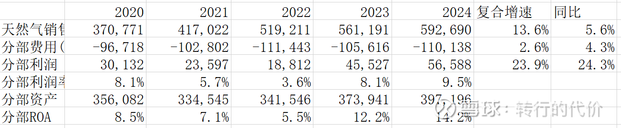 油气和新能源:主要是上游的油气开采,营收占比18%,营业利润1794亿占比66%,绝对的大头,其中原油开采占比52%,天然气48%,近5年营收复合增速14%,营业利润增速32%。假设按照分部成本除以油气当量产量,得到计算值混合油气开采成本43美元/桶;该部门业绩挂钩国际原油与天然气价格,营业利润率20%,为中石油最赚钱板块,,但是实际销量复合增速只有3%,分部利润更多的贡献恐怕还是来自于内部管理,降本增效?