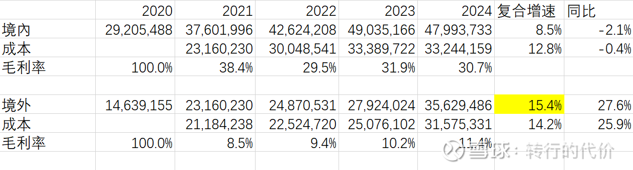 我国家电市场受城市化进程影响逐步放缓,出口是关键出路,海信这点做的很好,目前出口占比已经提升到45%,复合增速15%,快于国内的8%,形成两条腿走路,长期增长的持续性把握大了不少;槽点是国际业务通过海信国际代理,上市公司低毛利约12%卖给海信国际,同时市场费用由海信国际承担,关联交易导致上市公司少了不少利润。