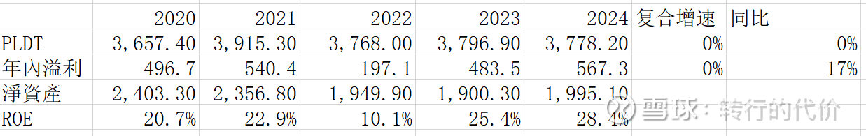 PLDT:菲律宾最大的电信营运商,类似于我们的中国移动,公司持股25.6%,PLDT目前正处在资本支出密集期,近5年营收与净利润增速平稳,ROE高达28%,24年贡献利润1.48亿美金。