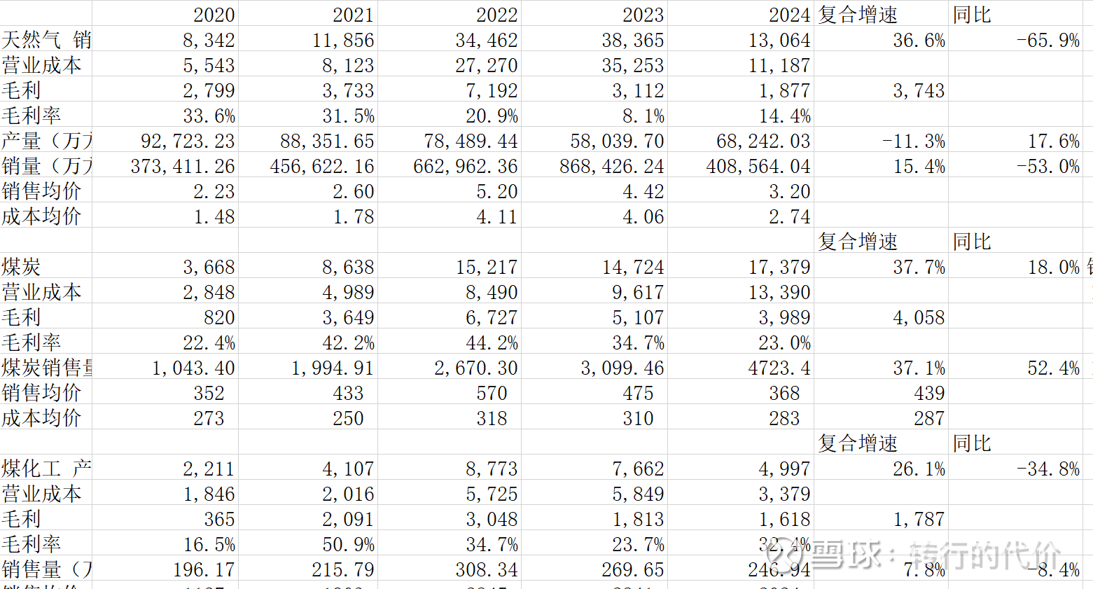 天然气:自产煤化气7万方这个赚钱,毛利率50%,可惜没法扩产了;进口LNG 纯周期,挂钩国际天然气价格与国内现货价格,算套利贸易,毛利率也就10%,波动剧烈,国际有价差可在国外卖,国内现货有价差优先卖国内,但有阶段性价格倒挂亏钱的可能;总体天然气板块过去5年均值利润37亿;暂不考虑增长;