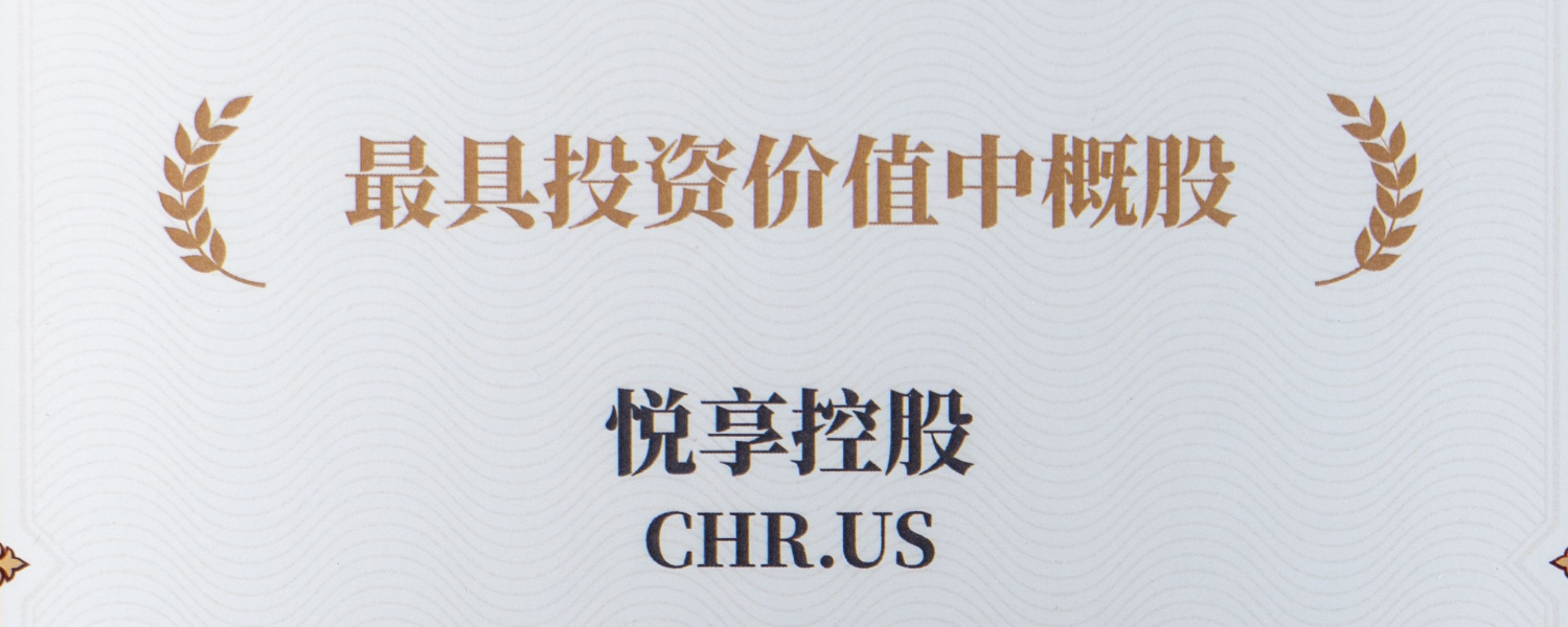 “最具投资价值中概股” 奖项旨在表彰商业模式卓越、经营情况优良,能够给社会提供了更美好的产品或服务,且在社会责任方面作出优异贡献的美股上市公司。$悦享控股(CHR)$ 此次获奖,充分体现了市场对其商业价值、社会价值与投资价值的全面认可。