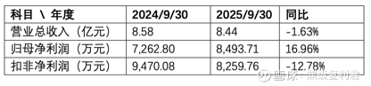 2025年前三季度归母净利润累计为8,486.71万元,同比增长 约17%;扣非净利润略有波动,同比下降主要受中期利润基数影响。