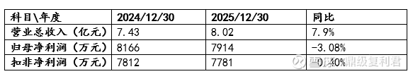 2025年营收约8.02亿,净利润7914万(同比下滑)。