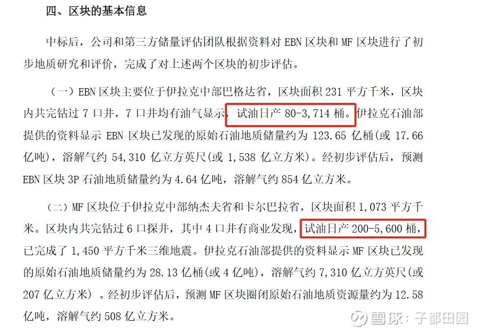 我们看看中曼石油中标的伊拉克2个区块。这2个区块试油的产量最高达到了每天5600桶(等于740吨)。