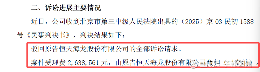 目前公司确实还在上诉期内,恒天海龙表示会关注后续情况。理论上二审还有翻盘机会。但现实难度很大, 一审既然已经全盘驳回,二审要推翻原判难度非常大。除非能拿出全新的、强有力的证据。