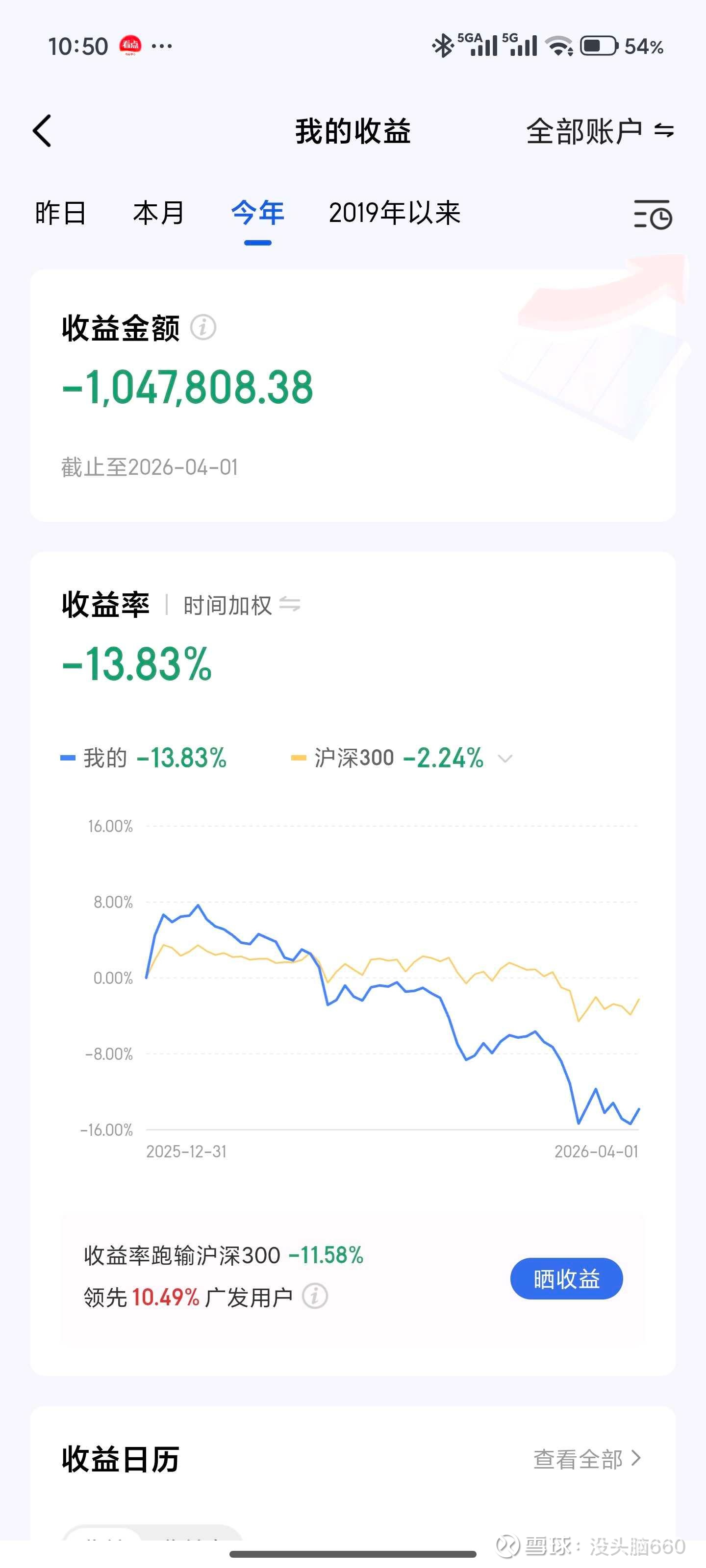 第一季度浮亏100万,盈亏同源。