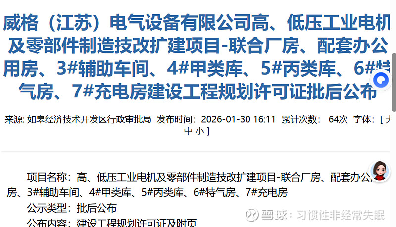 1亿美元威格高压能源电机,已开工。