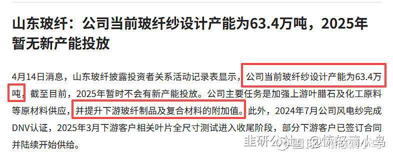 玻纤纱为电子级玻璃纤维布的生产的原材料。2025年5月15日互动,公司当前玻纤纱设计产能63.4万吨。