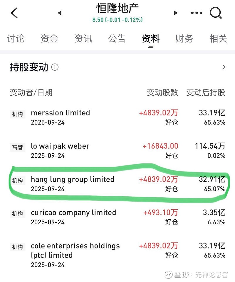 $恒隆集团(00010)$ 至2025年9月24日,恒隆集团持有恒隆地产权益上升到65.07%。若按照地产目前股价8.5元计,集团持有地产的权益换算成恒隆集团股价每股为20.5元(不计集团自持物业)。还是老问题:恒隆地产现价是高估?合理?还是低估?集团股价估值回归还需等待多久或者说需等待怎样的机遇?