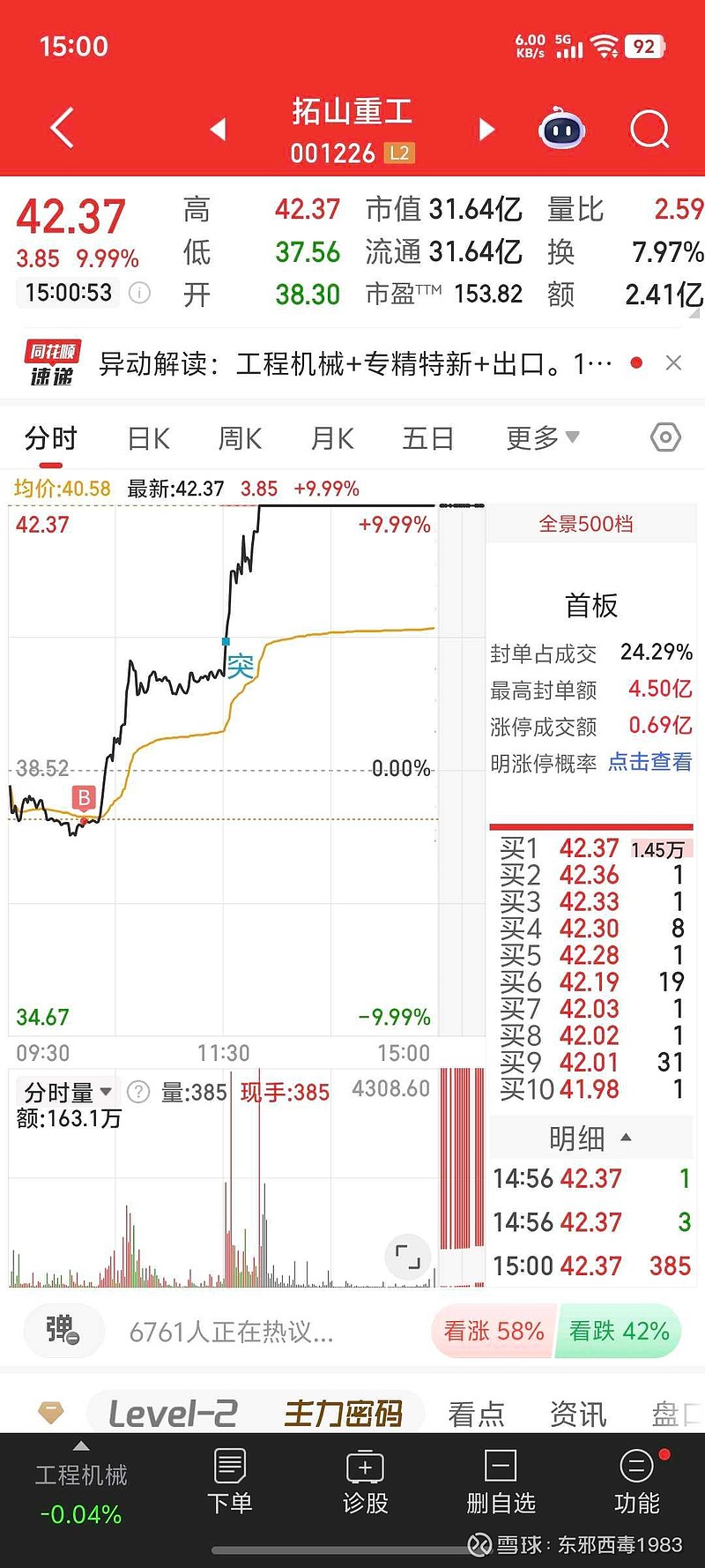 $拓山重工(SZ001226)$