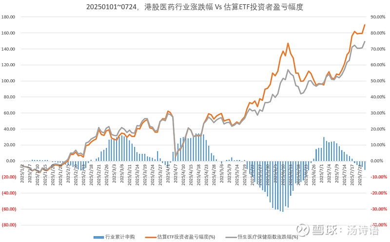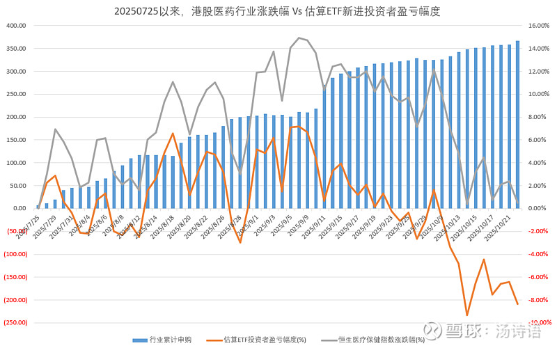 昨天港股创新药板块在$信达生物(01801)$ 公布大额对外授权却意外下跌后,今早继续下跌。我又算了下ETF的申购数据,发现7月25日以来新申购了约367亿元,这些钱到昨天收盘整体已有约8.3%的浮亏,今早到现在恒生医疗保健指数又跌了2.8%,如果这跌幅持续到收盘的话,估计这些钱要浮亏10%以上了。而今年年初到7月24日,这些ETF反倒是没有申购的,而恒生医疗保健指数大涨74.6%。所以,我一直以来都很好奇,为什么主升浪时没人买它们的指数基金,反倒高位震荡时冲进来这么多钱?究竟是什么人的钱呢?367亿元可不是小数字。现在倒好,这些钱成套牢盘了。