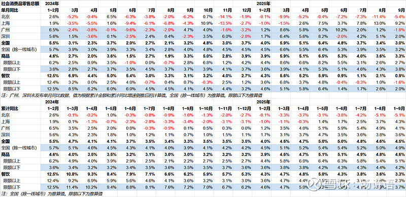 广州和深圳终于公布了9月份的消费数据,看起来这两个城市9月份的消费也明显减速了,广州的单月同比又一次转负了。当然了,也需要考虑到,去年中秋节在9月份,今年则在10月份。我们等等看10月份的消费数据吧。$消费ETF(SZ159928)$ $恒生消费ETF(SZ159699)$