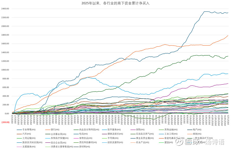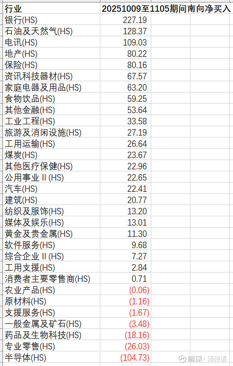 进入11月以来,南向资金继续快速净买入港股银行股,延续了国庆节后的趋势。10月9日至11月5日期间18个交易日净买入多达227亿港元,平均每个交易日净买入12.62亿港元。除了银行外,南向资金也快速净买入港股保险股,同期净买入达80亿港元,平均每个交易日净买入4.45亿港元。$香港银行LOF(SH501025)$ $中国平安(02318)$ $中国人寿(02628)$