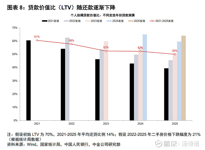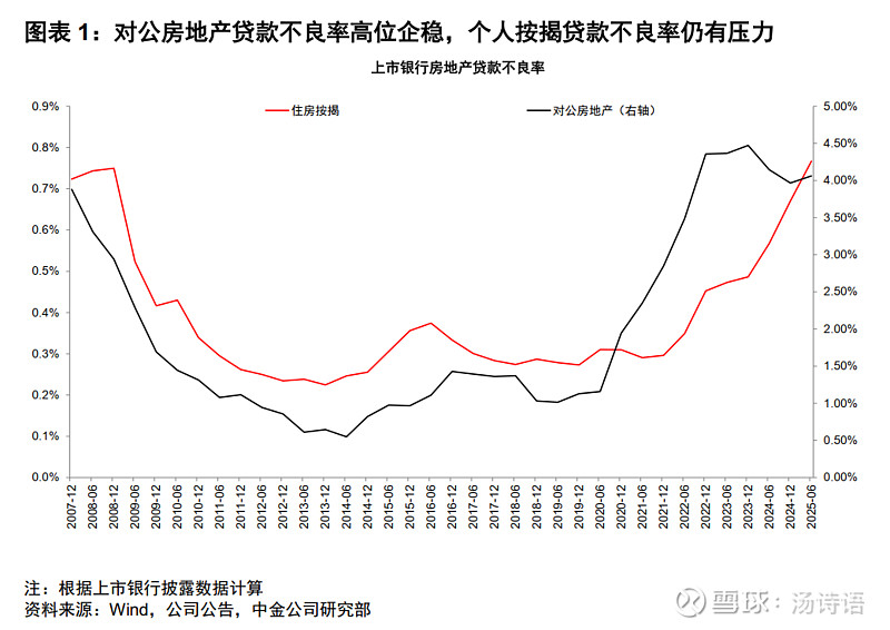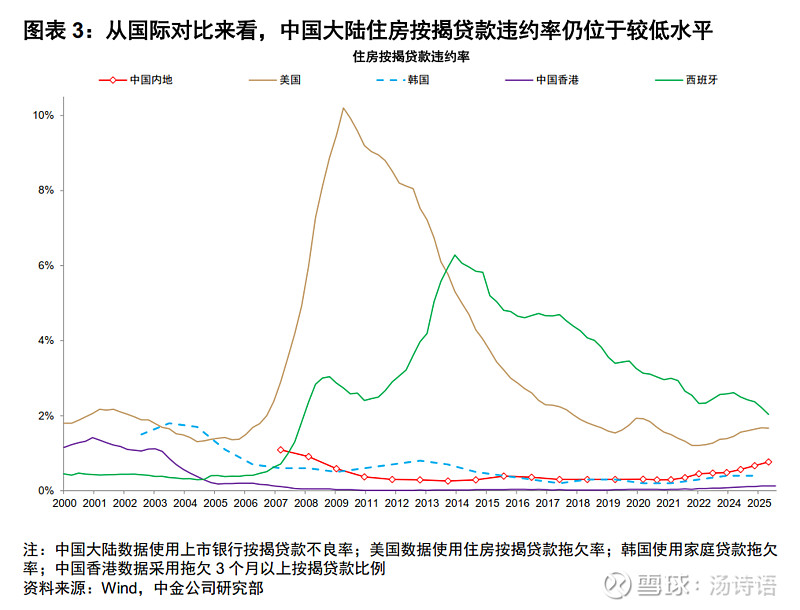 银行的房地产贷款的质量一直是争议的焦点。从近期数据看,对公风险暴露得早,似乎已经高位企稳了,但个人住房按揭贷款还在风险暴露的过程中(图1)。房地产不良跟房价密切相关,跟海外历史对比,似乎还有最后一跌,但海外其他市场(除日本外)最后一跌结束后就反弹甚至创历史新高了(图2)。跟海外比,我国个人住房按揭贷款的违约率依然相当低(图3),有些国家哪怕经济很好的时候,按揭贷款的违约率都比我们现在还要高,这暗示,就算还有最后一跌,违约率可能也远远到不了危险的程度。另外还有一个有利条件是,我们的首付比例高(至少30%,真实首付比例还更高一些),并且高价卖出去的那些房子(尤其是2019年~2021年)到现在其实已经偿还了4~6年的房贷了,这导致贷款占房子市价的比例持续降低,测算下来可能也就50%了(图4),也即,从总体看,就算银行收回了房子,但哪怕腰斩再卖出,也不亏钱。$中证银行(SZ399986)$ $HK银行(CSI930792)$ $银行ETF易方达(SH516310)$ 另:雪球投票入口 网页链接