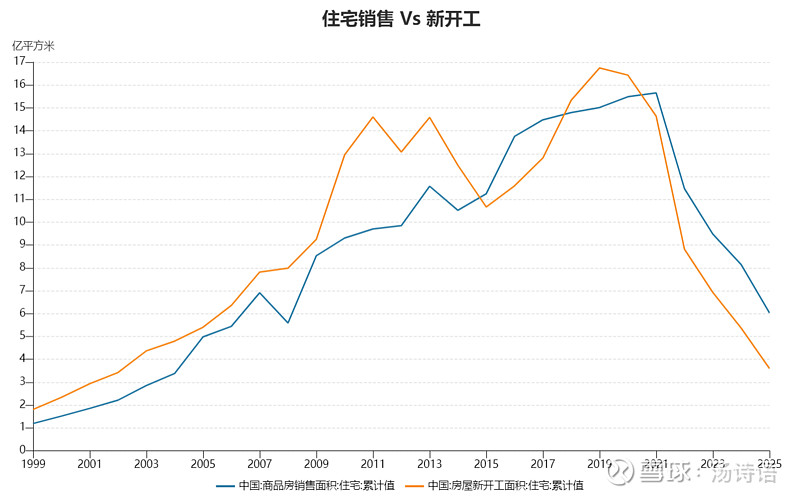 住宅的新开工的趋势也是一样的,峰值时一年有16.75亿平,去年只有5.37亿平了,今年前十个月又比去年前十个月下滑了19.33%,推算今年全年也就4.33亿平而已,不仅是腰斩,而是脚踝斩了!既然已经经历过了12.42亿平的下滑,就算4.33亿平再腰斩一次,也就再下滑2.17亿平,跟之前的下滑12.42亿平比,这可太轻松了!