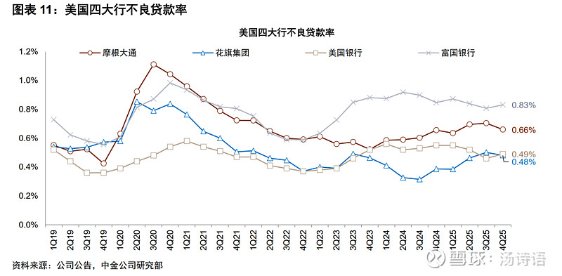 美国四大行,平均净息差高达2.43%,不良率也低,都没超过1%,另外非息收入占比也高,国内的银行应该很羡慕吧!