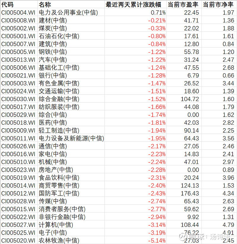 经过了两天的剧烈波动后,有一个行业是上涨的:电力及公用事业。这是市场自发选择的结果,值得重视;表里面跌幅明显比A股整体小的行业都值得重视。
