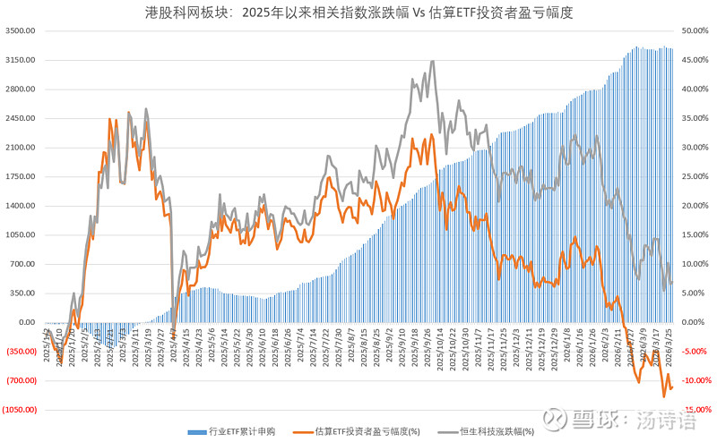 港股科技、互联网板块的ETF,近期总算没净申购、转向净赎回了。很遗憾,从2025年初到现在,基民们整体是亏损10%以上的,如果有谁头脑发热申购在高点了,亏损幅度更大。总的来说,港股科网的基民作为一个整体的感觉,就好像牛市压根没来过一样......