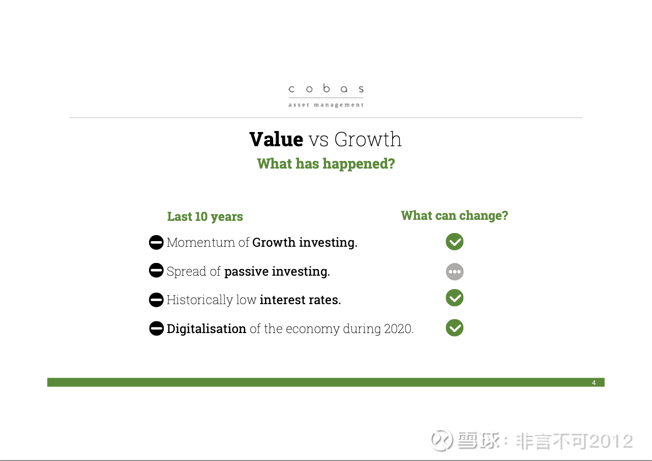 在过去的十年里,我们看到成长股的动能非常强劲。但你知道,这其实是一种自我实现的预言,当某件事有效时,它会一直奏效,直到有一天失效。我们也看到这种情况反映在主动投资与被动投资的表现差距上。我认为,当市场出现一个拐点时,动能会发生变化,届时价值投资将获得顺风助力,这将成为对我们非常有利的正向力量。至于被动投资的扩张,我们认为这肯定不会改变。它会一直存在,并且可能会继续增长。但这对我们投资的方式影响不大。