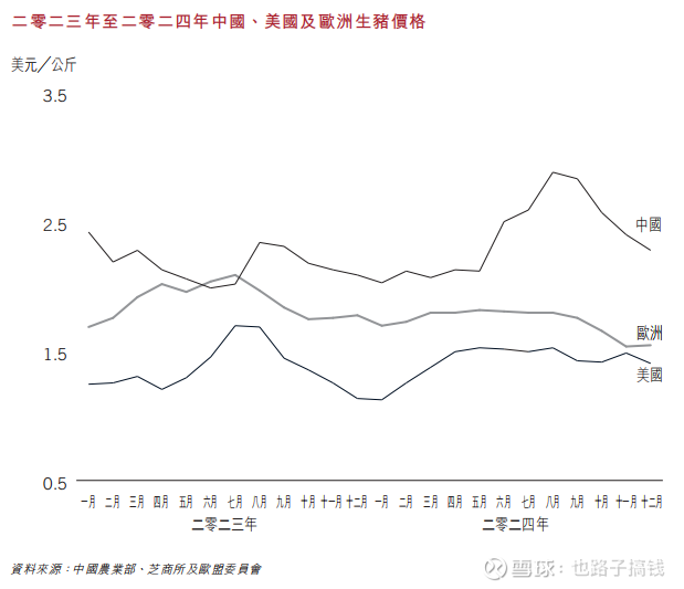 全球猪肉产业来看,中国是最大的猪肉生产国和消费市场,然后就是欧洲和美国。从GDP也能知道,这三者都是生产和消费能力前三的地方。