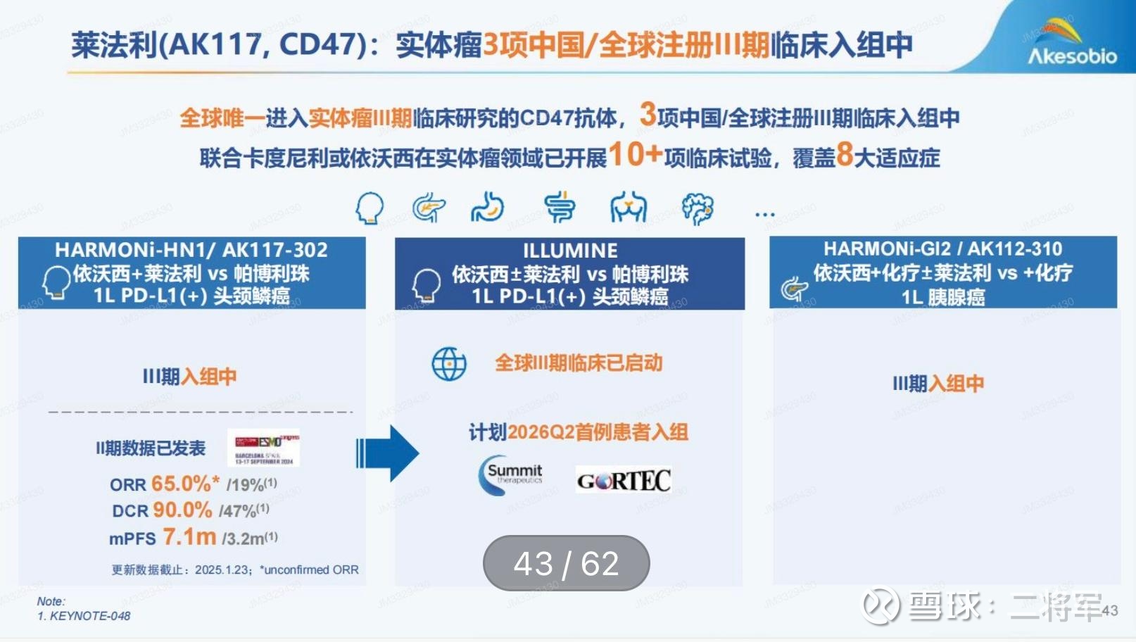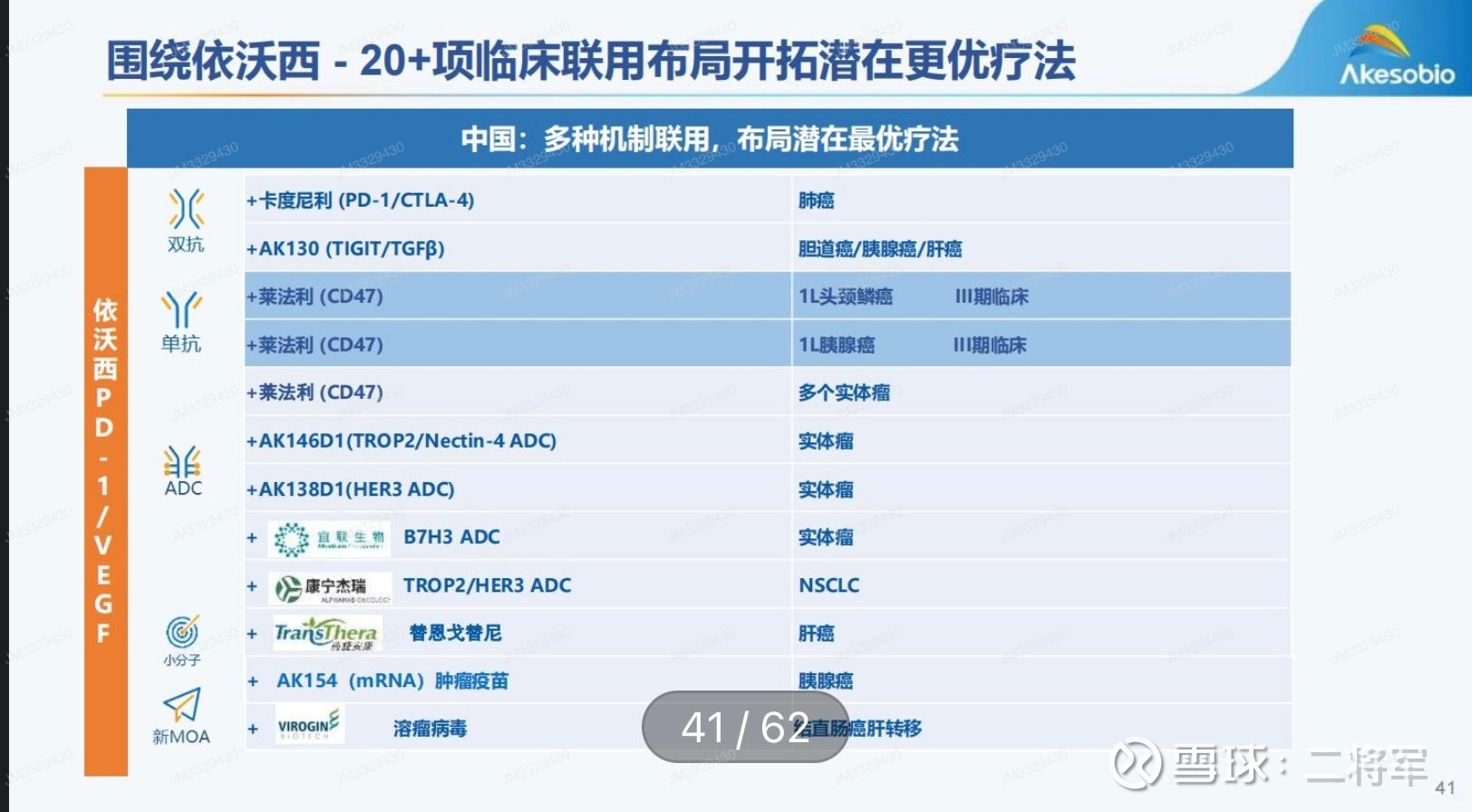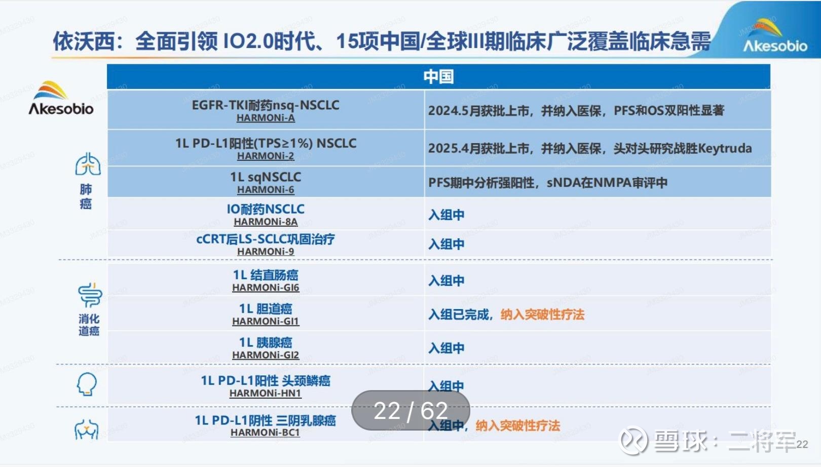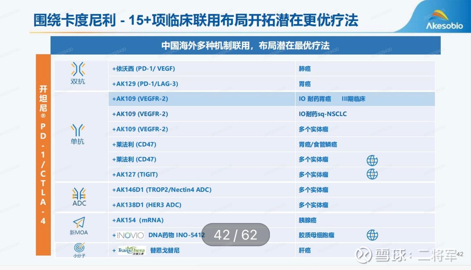 AK112核心进展,特别注意H3的鳞癌部分已经完成入组,结直肠癌、胰腺癌等全球大三期,AK104的胃癌的全球大三期