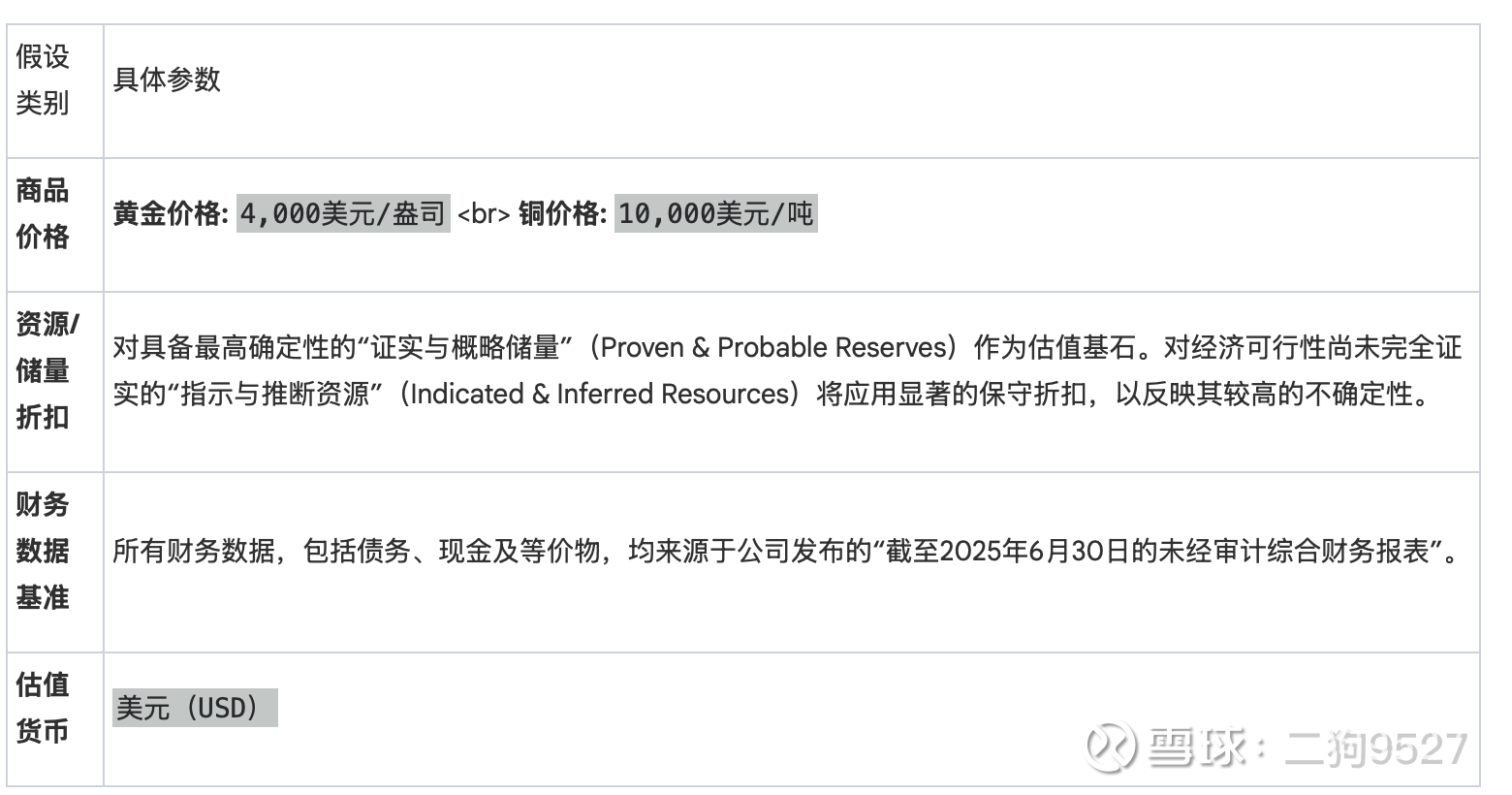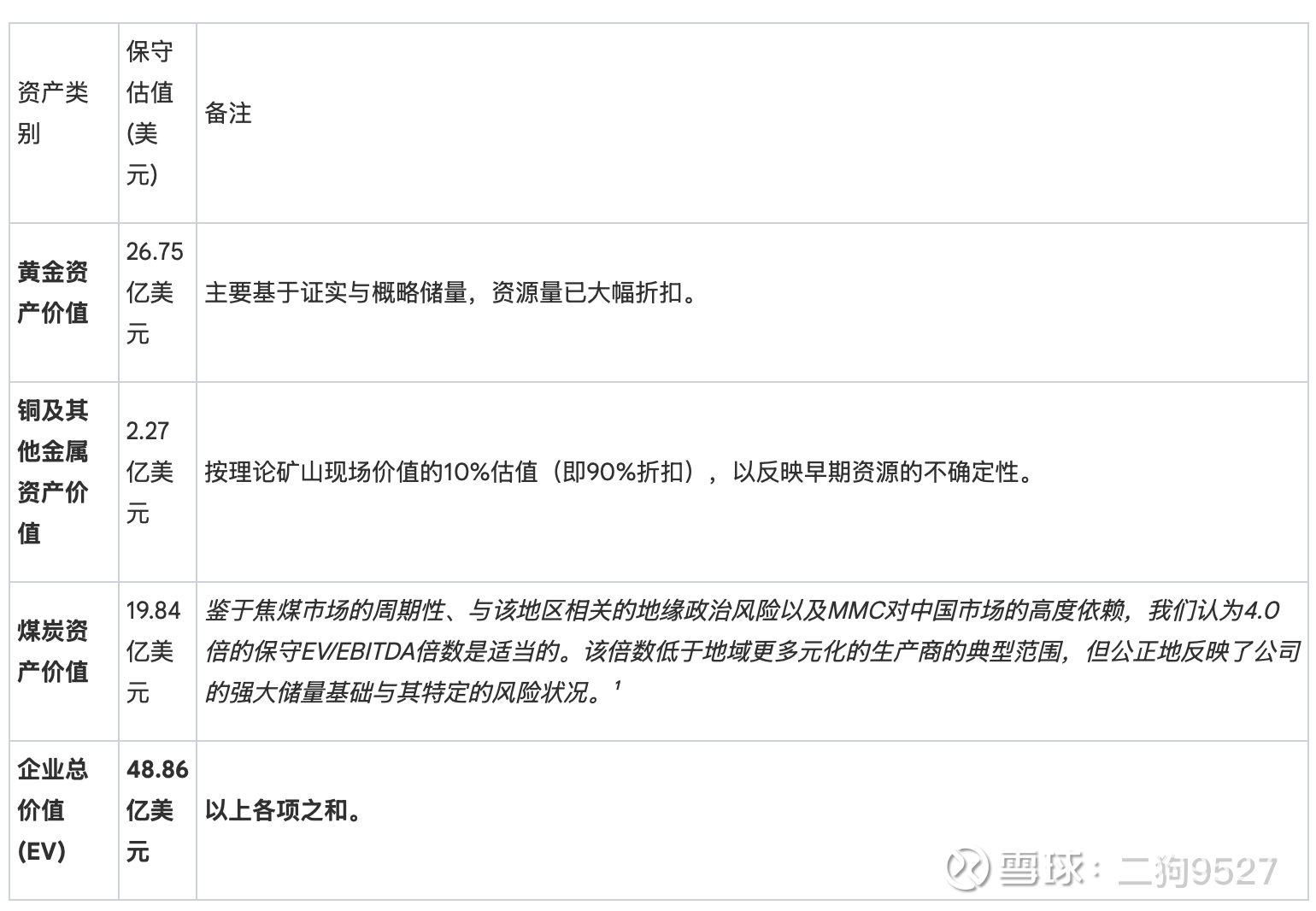 将具备高度确定性的储量价值与经过大幅折扣的资源潜在价值相加,得出MMC黄金资产组合的综合保守估值。