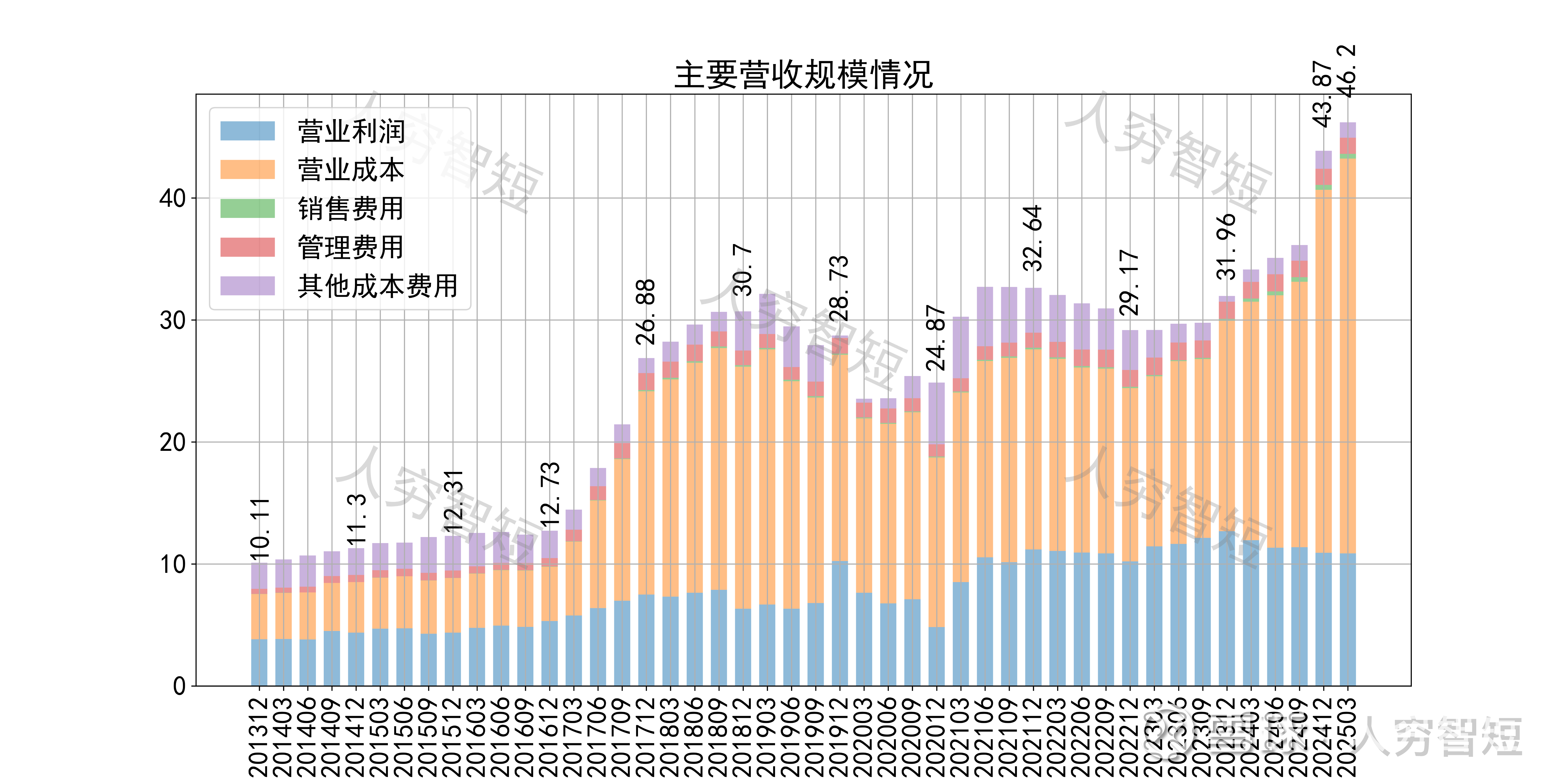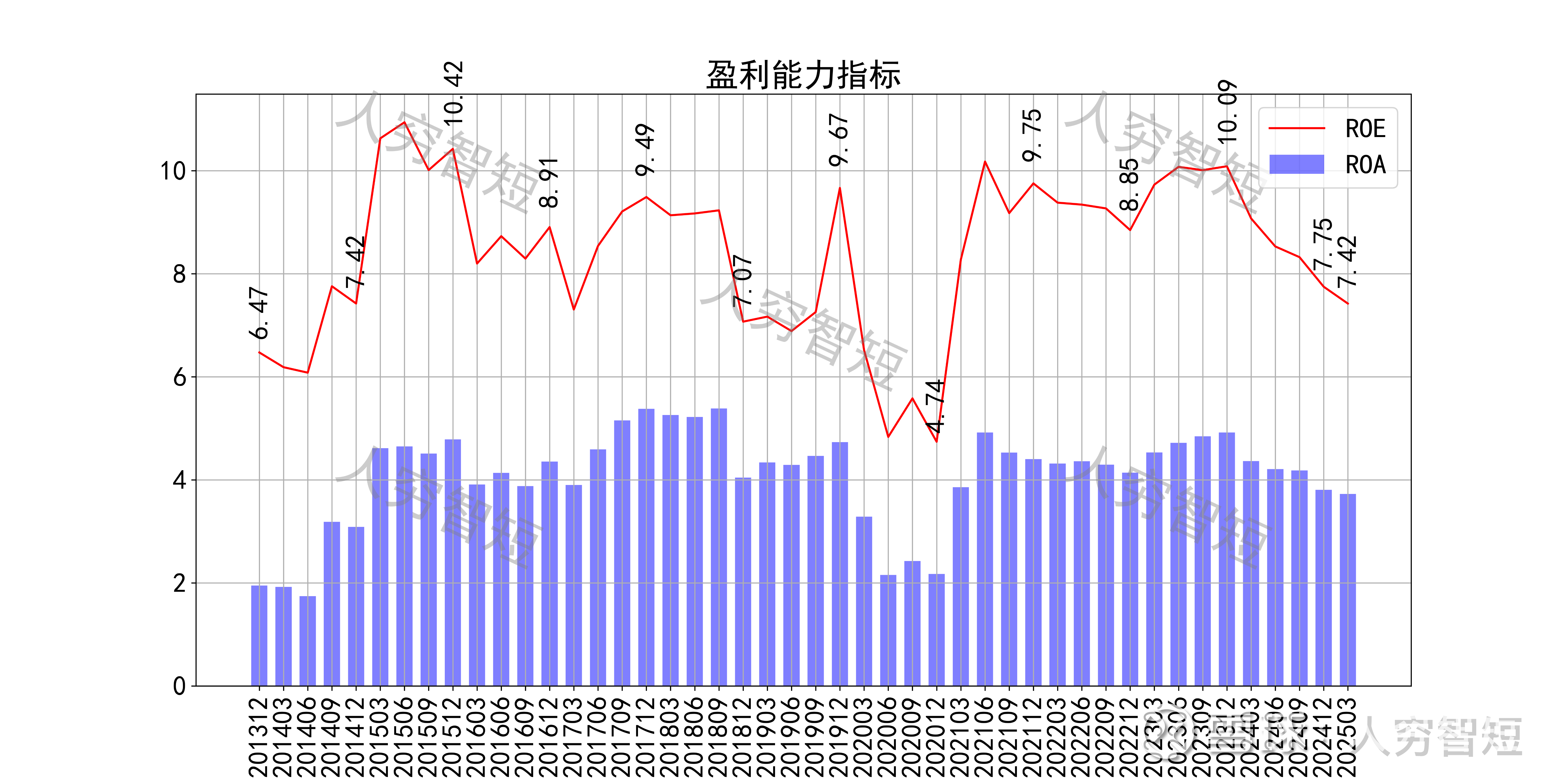 最近十年营收规模复合增长率约为14.13%,到24年末,TTM营业收入为43.87亿元。成本费用端构成来看,营业成本占据主要地位。整体毛利率震荡走低,近年来进一步下滑,净利率同步波动,未看到上行趋势。各项费用控制一般,管理费用占比较为稳定,带动整体成本费用占比维持一定水平。盈利指标ROE、ROA显示,盈利能力自高位有所下滑,最新ROE在7.42%左右。