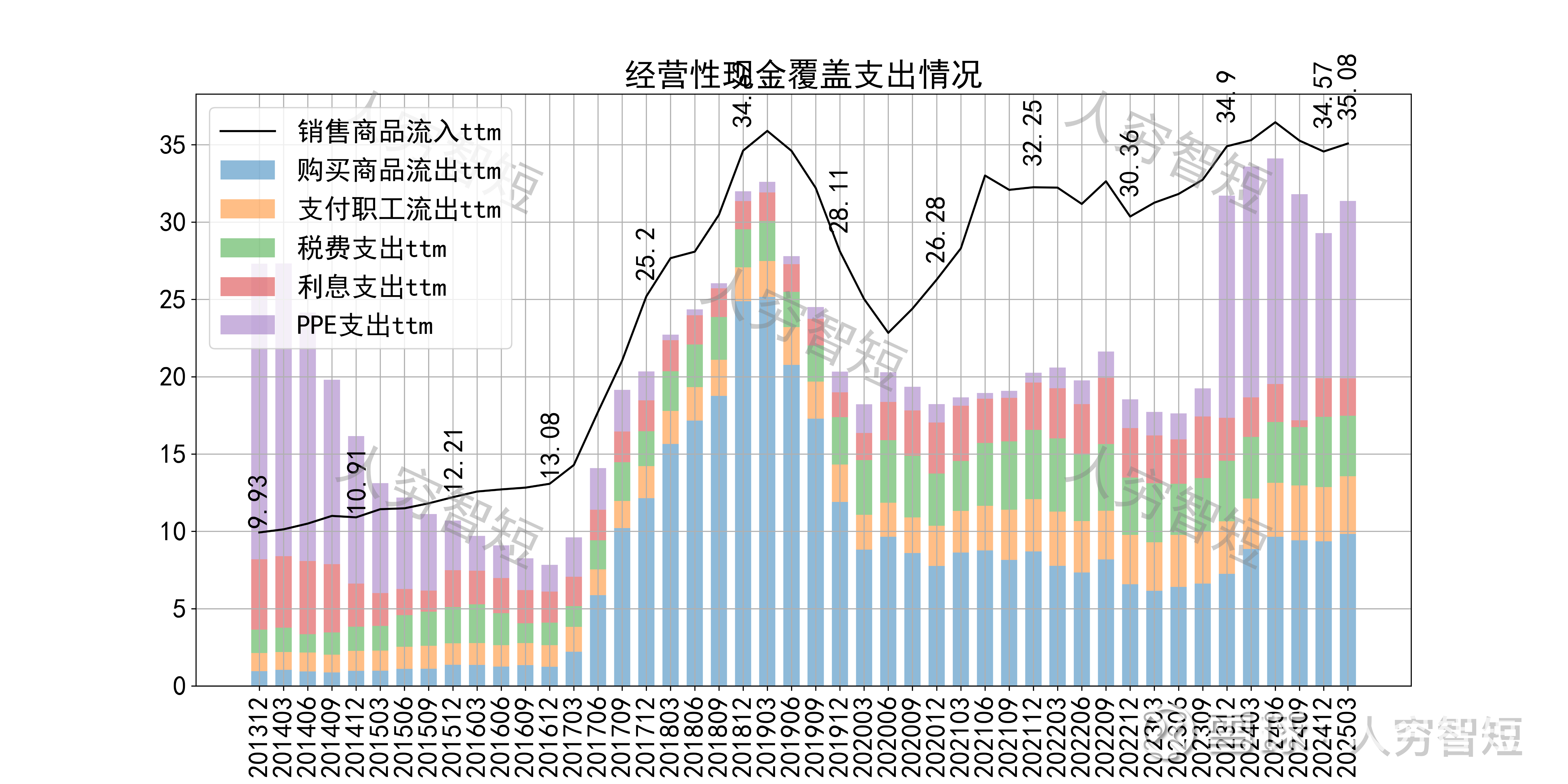 现金流收支方面,近几年销售商品获得的现金流足以满足日常的成本、费用以及扩大再生产,结余尚可,随着近年来资本支出扩张,现金流结余持续转弱,目前已看到边际好转。(较为奇怪的是,现金流表现丰富但有息债务居高不下且有一定短期化)