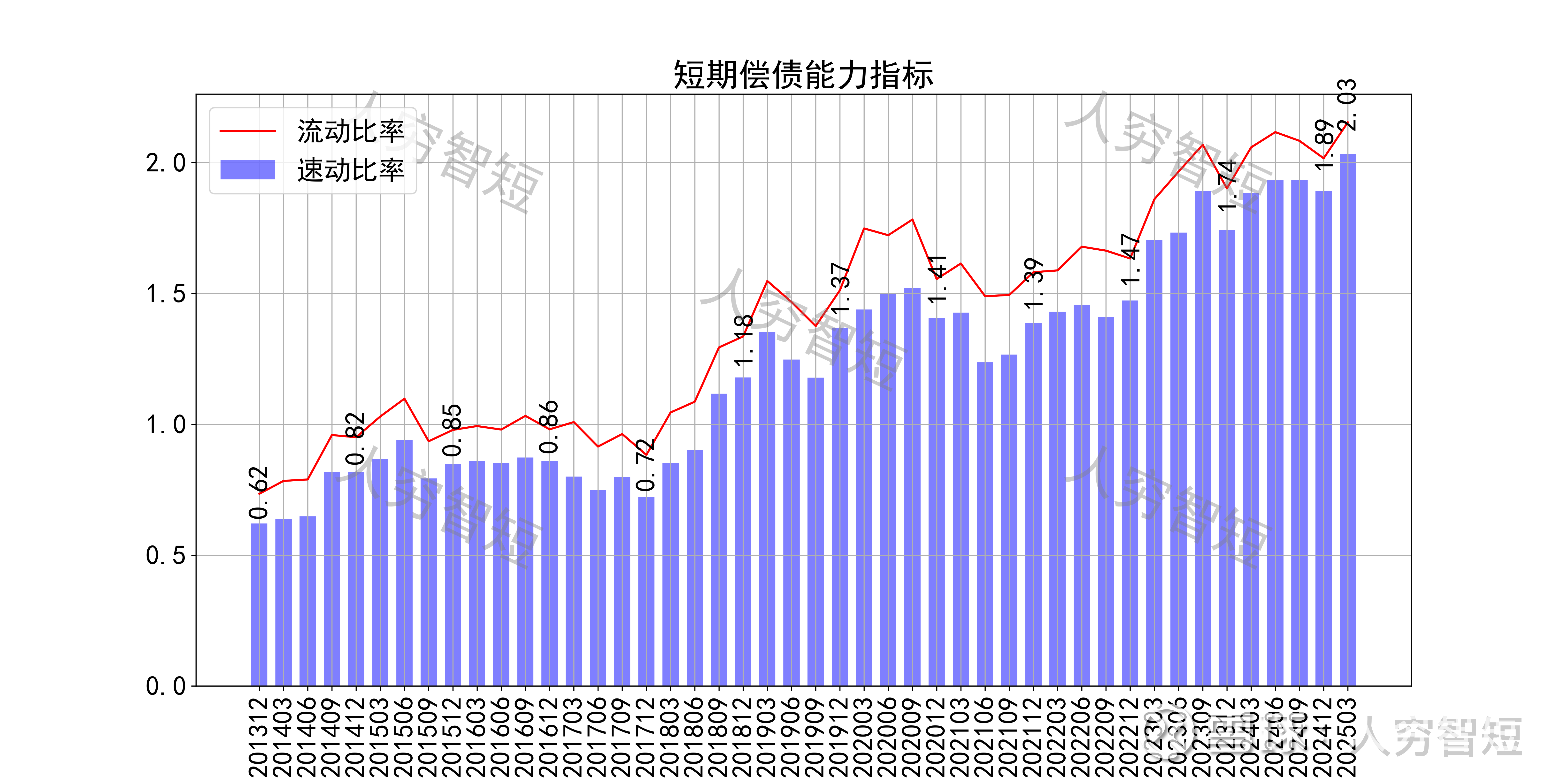 长期偿债指标中,资产负债率震荡走低,近年减少至38%左右,有息负债率约为17.83%,有一定的债务负担,对供应链上、下游资金占用较弱。短期偿债指标中,流动比率、速动比率较强且持续走强,二者差异较小,主要系存货规模偏小所致,资产短期流动性强。