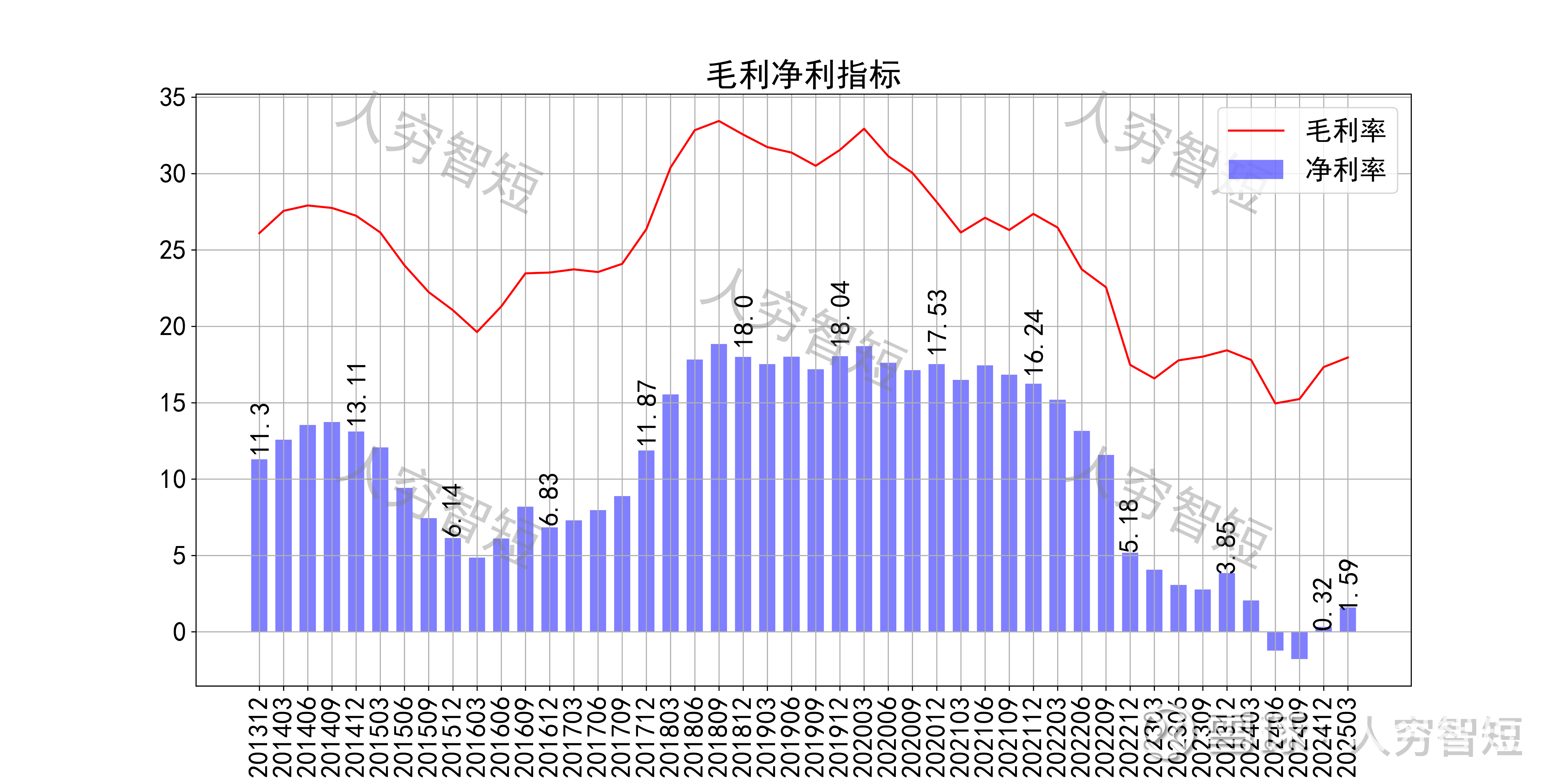 公司最近十年总资产复合增长率6.53%,截至24年末,为165.33亿元。资产结构以现金类资产、应收账款、固定资产为主。应收账款余额16.54亿元,一年内占比约47%,期限结构进一步恶化,总体规模维持高位,应收款质量较差。固定资产余额65.40亿元,主要为房屋建筑物37.10亿元,尚需折旧21年;机器设备22.25亿元,尚需折旧约7.5年;在建工程规模较小,无新增产能。