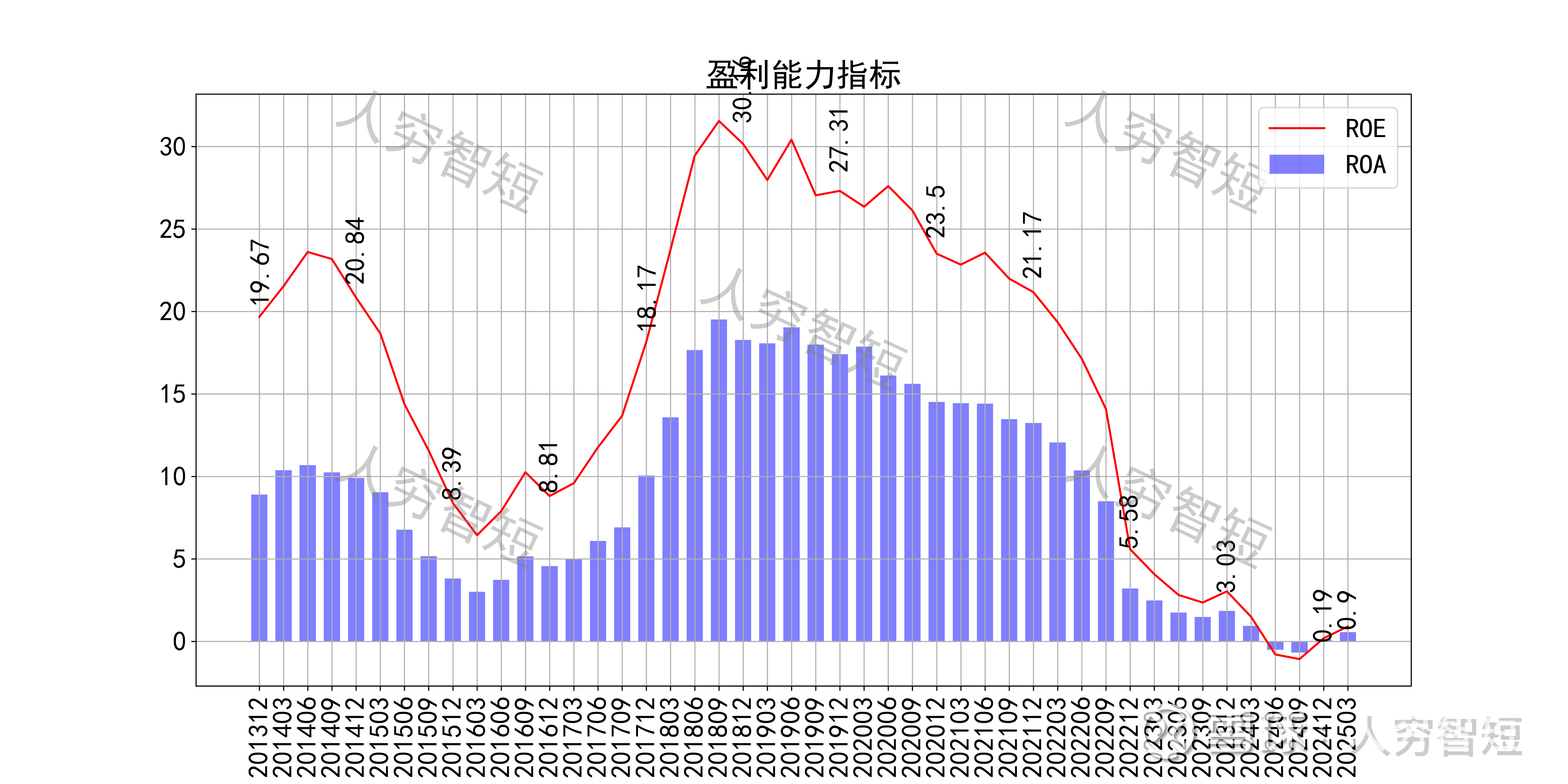 最近十年营收规模复合增长率约为-0.63%,到24年末,TTM营业收入为57.45亿元。成本费用端构成来看,营业成本占据主要地位,成本构成中煤炭、电力等原材料占比超过60%,煤炭以外购烟煤为主。整体毛利率震荡走低,近年来净利率同步波动,处于盈亏平衡状态。各项费用控制一般,管理费用占比持续走高,带动整体成本费用占比居高不下。盈利指标ROE、ROA显示,盈利能力自高位持续下滑,最新ROE在0.9%左右。